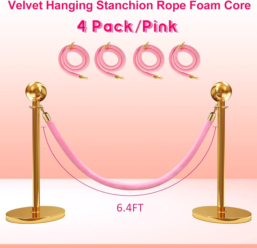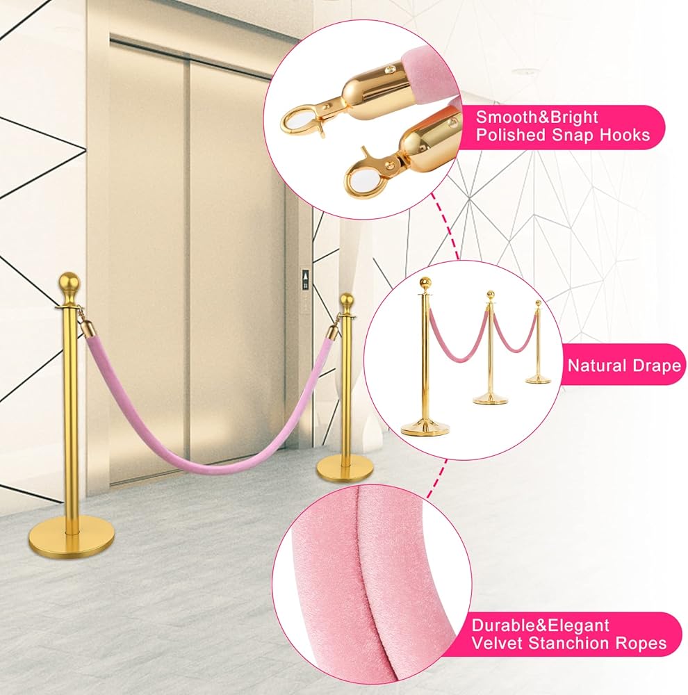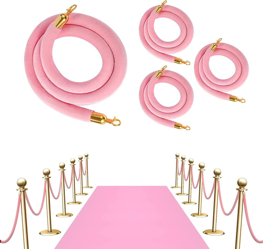 【4 عبوات من الحبال المخملية الوردية】تتضمن العبوة 4 عبوات من الحبال المخملية الوردية، يبلغ طول كل حبل 6.4 قدم، وقطره 1.3 بوصة. سهل الاستخدام بمجرد الضغط على عمودين حاجزين.