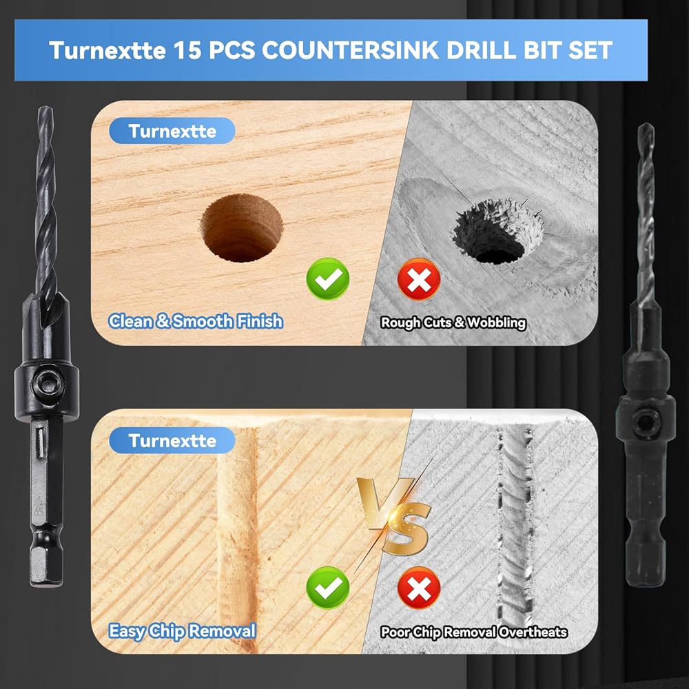 كل قطعة تم تصميمها بدقة لتكون حادة للغاية بمجرد إخراجها من الصندوق. يضمن تصميم الفلوت الحلزوني المعزز إزالة الرقائق بسرعة وكفاءة، مما يمنع الانسداد. استمتع بتجربة حفر سلسة ونظيفة وسريعة في كل من الخشب اللين والخشب الصلب، حتى على الأسطح ذات الزوايا.