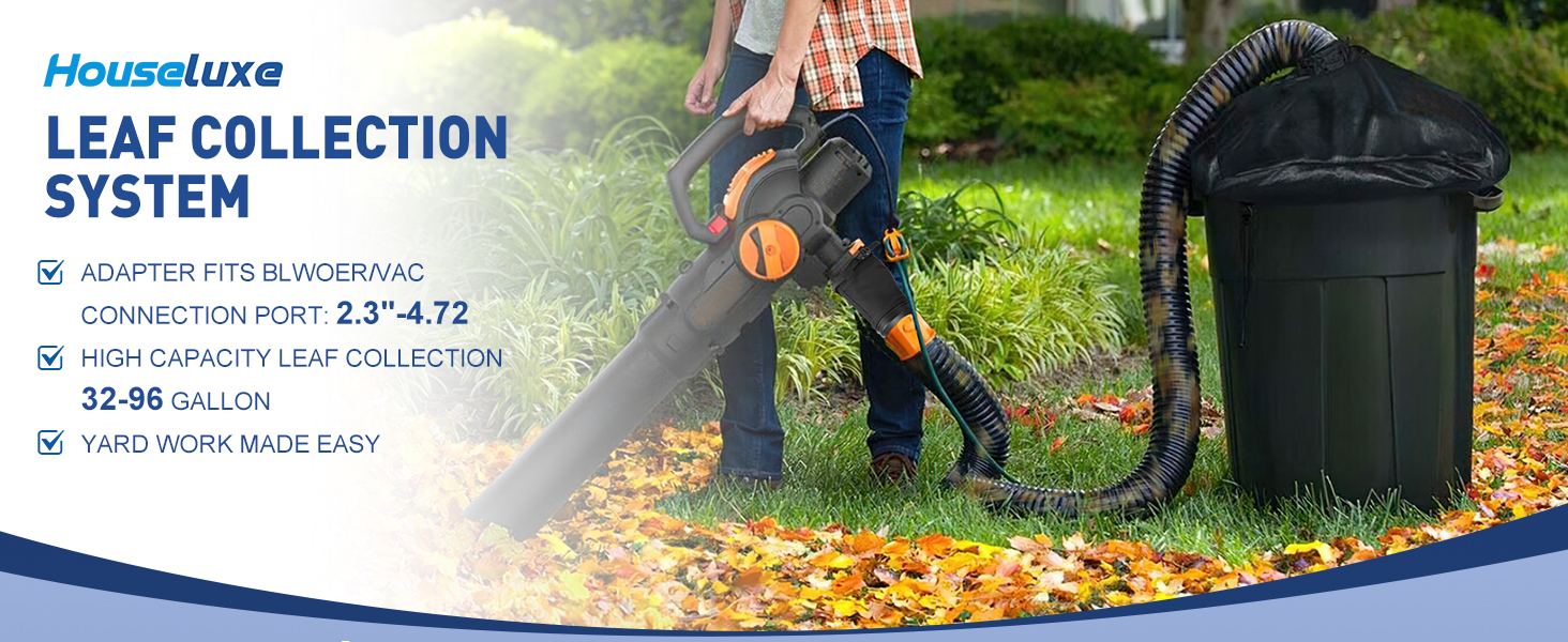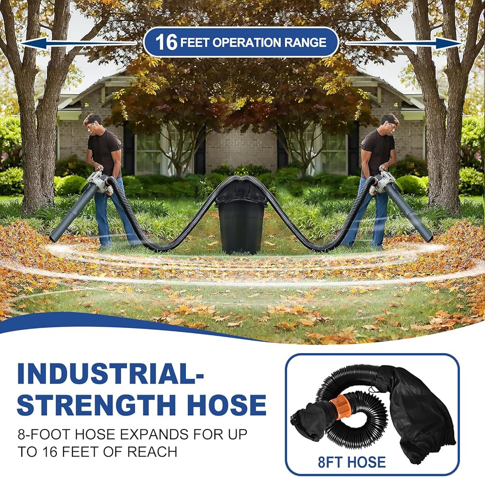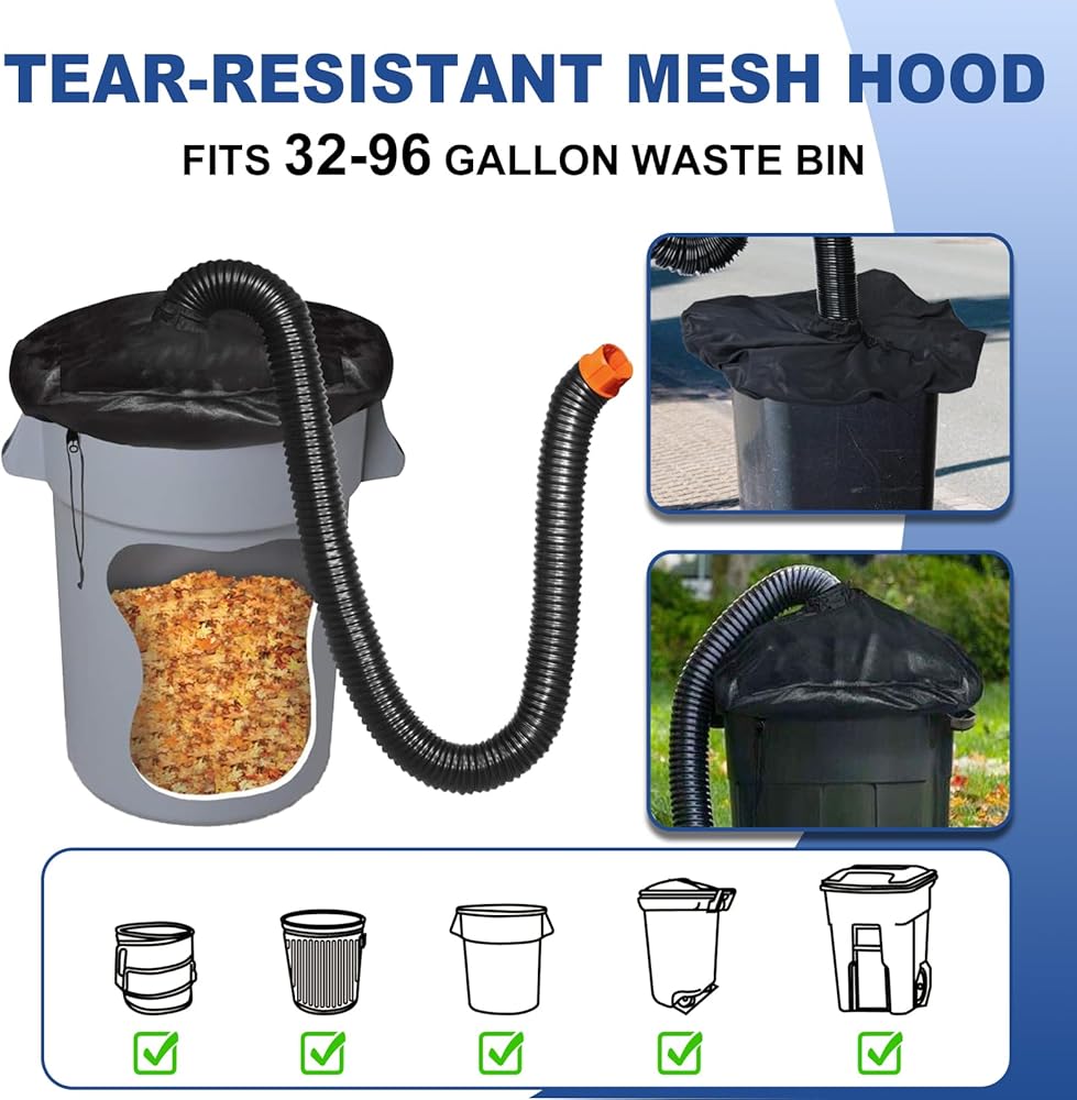 نظام كامل للعناية بالعشب للأوراق والعشب: يشتمل على غطاء شبكي مقاوم للتمزق، وخرطوم معزز قابل للتمدد بطول 2-8 أقدام، ومحول قابل للتعديل (2.3 بوصة - 4.72 بوصة). حل الكل في واحد لتحويل منفاخ الأوراق/الفراغ إلى نظام تفريغ خارجي عالي الكفاءة
