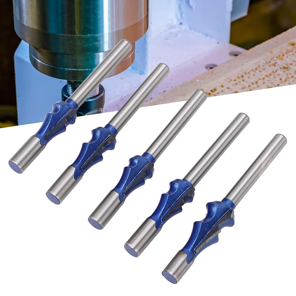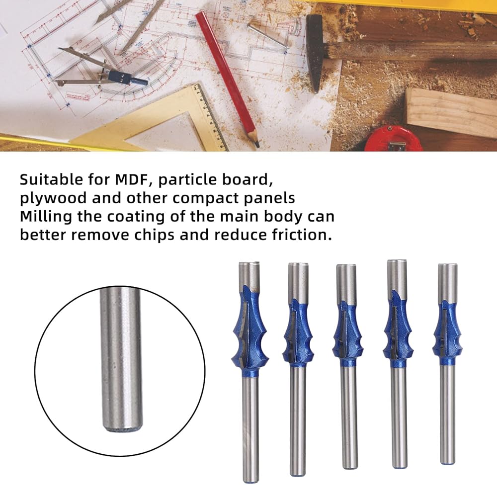 مجموعة لقم التوجيه المعمارية، 1/4 ساق من سبائك فولاذ التنغستن، 5 أحجام للأعمال الخشبية، MDF، لوح الجسيمات - تدفق قاطع، طلاء أزرق نانو، أداء قطع سلس