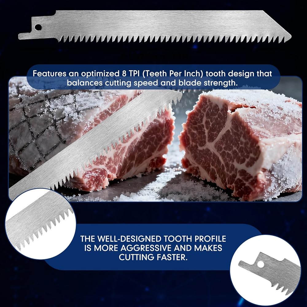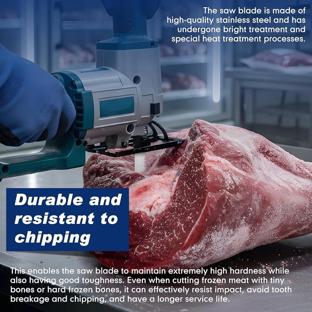 • Heat Resistant Hardness for Long Lasting Use: High speed cutting generates intense heat at the tooth tips, which softens and wears down ordinary blades quickly; However, the frozen meat bone cutting saw blades retain its exceptional hardness even under extreme heat, significantly slowing down wear and tear; This heat resistance translates to a much longer lifespan, ideal for frequent users who want to avoid constant blade replacements