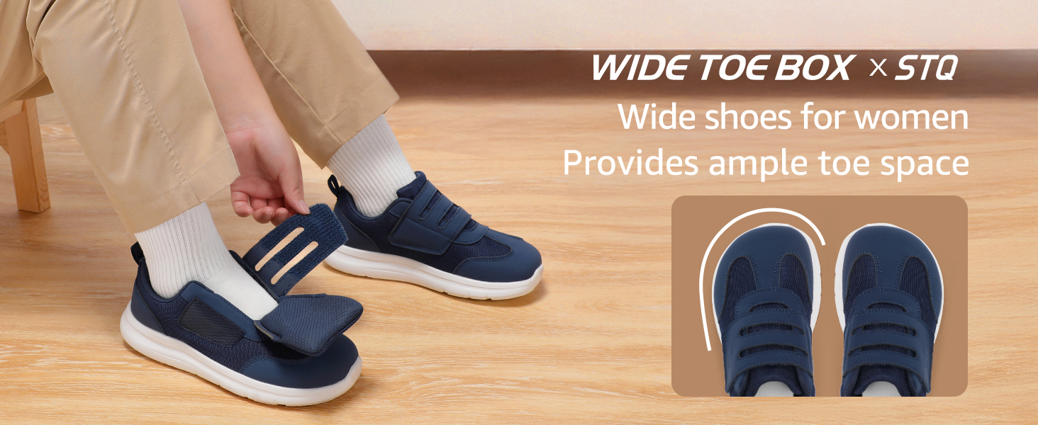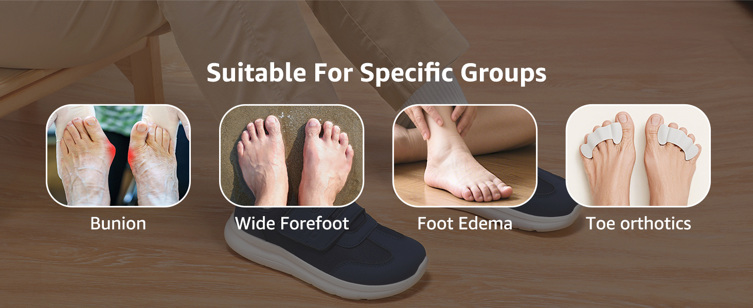 Our wide toe box shoes women are designed with an extra wide width design that lets your toes relax and splay naturally. These orthopedic shoes for women are ideal for those managing various foot health needs, including plantar fasciitis, bunions, arthritis, and edema, as well as conditions like diabetic, morton's neurom, hammertoes, and general foot swelling. Perfect for expectant mothers, seniors, and anyone in recovery, these wide-width diabetic shoes combine function with everyday style. As both orthopedic and diabetic footwear, their spacious design comfortably accommodates flat feet, Morton's neuroma, and other concerns that require extra room. A arch support insole is ideal for reduce discomfort from poor circulation, metatarsalgia, and lymphedema, providing all-day stability and comfort. Crafted for real life, these plantar fasciitis shoes for women are the ideal companion whether you're enjoying a leisurely walk, managing neuropathy, or spending long hours on your feet at work.
