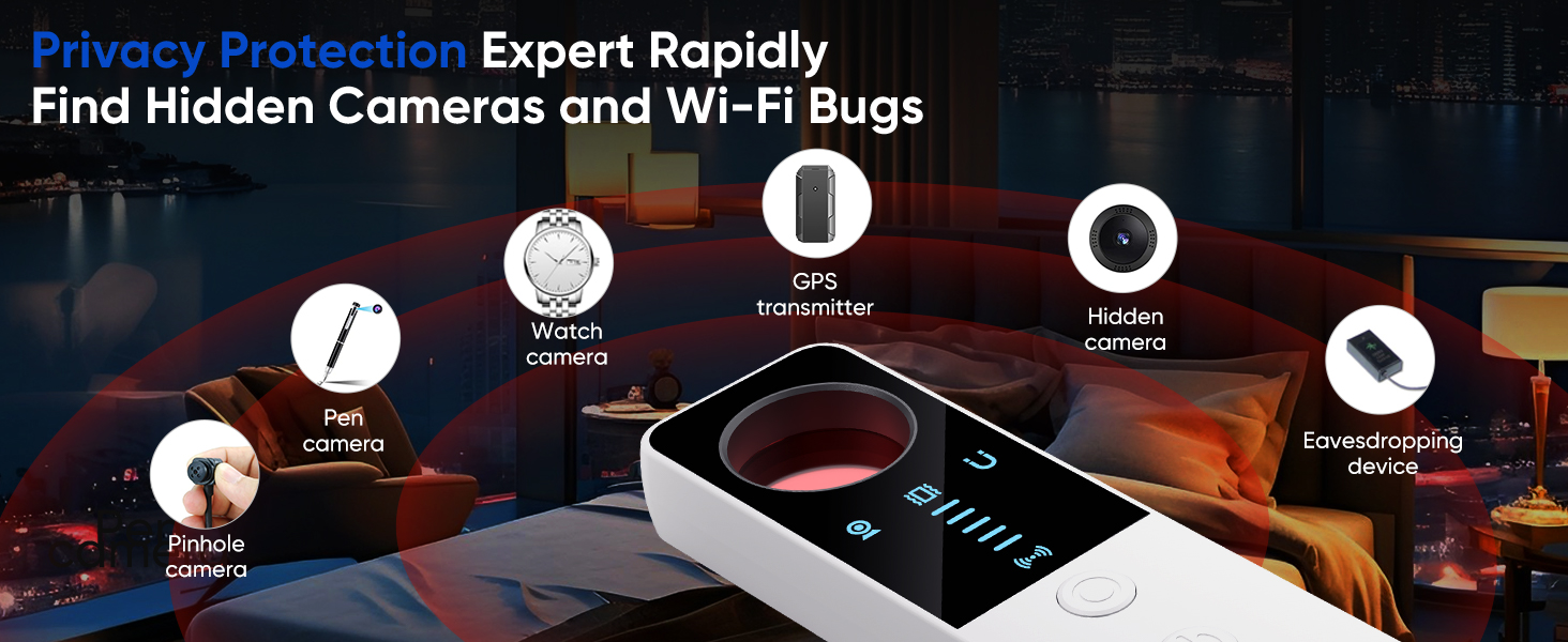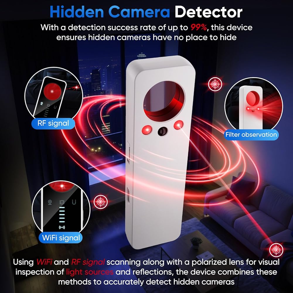 كاشف الكاميرا الخفية - كاشف تعقب GPS للمنزل والسيارة والفندق والمكتب - أبيض