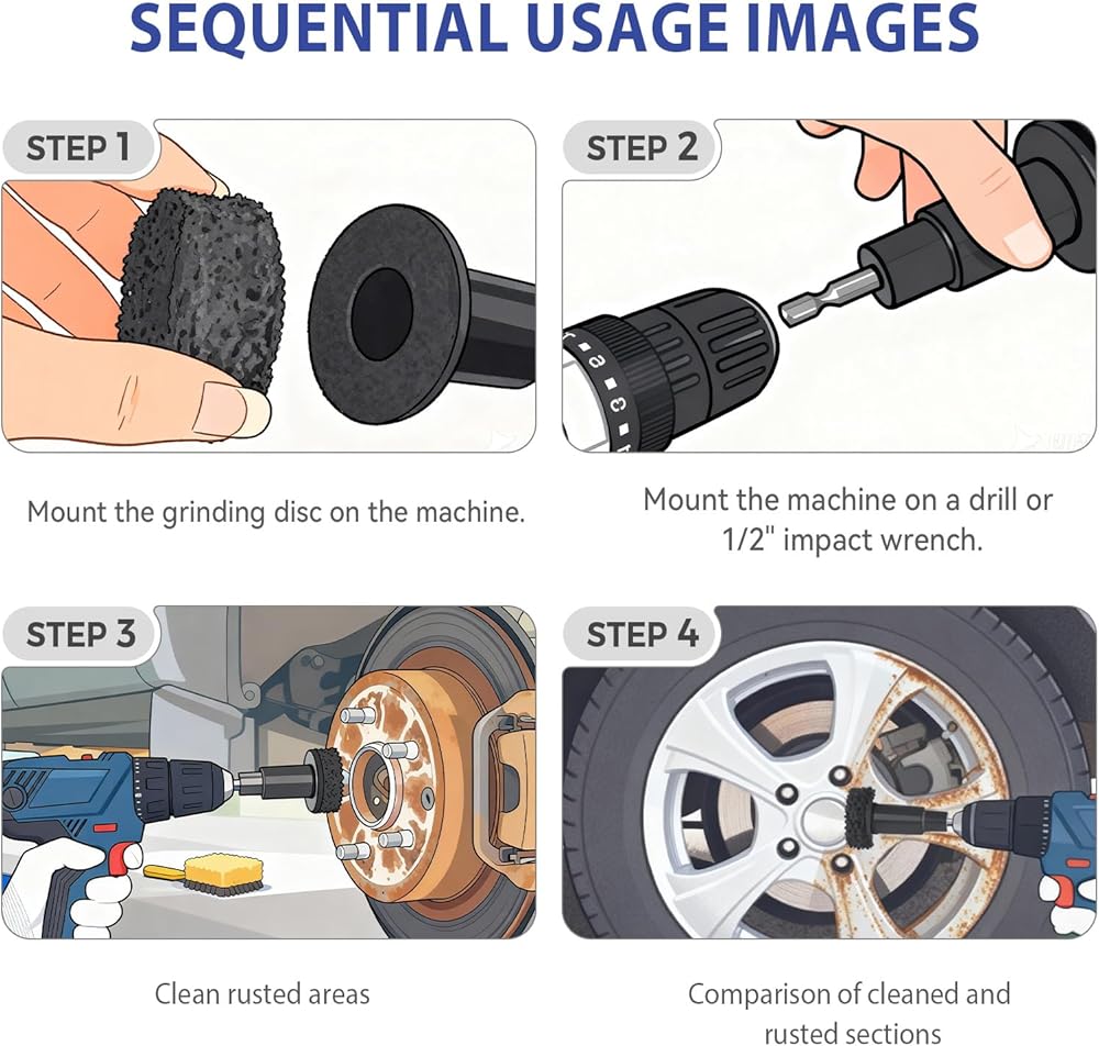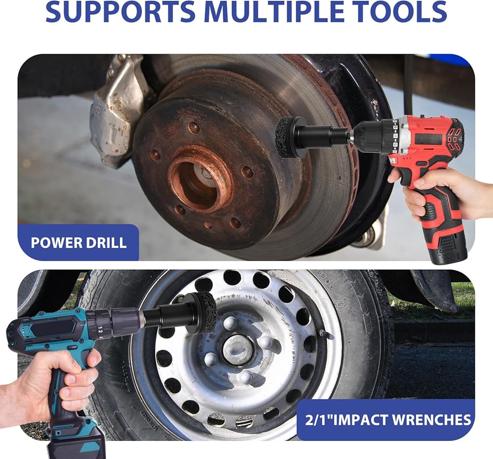 CLEAN STUDS IN SECONDS – Stop wasting time with manual wire brushes. This tool is designed to blast away rust, corrosion, and grime from wheel studs and the surrounding hub surface instantly. It restores the metal surface quickly, ensuring your wheels sit flush and secure.
