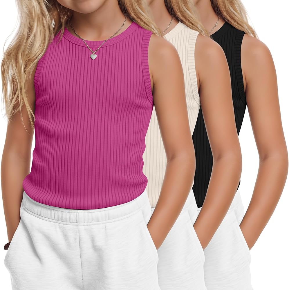 Classic Crew Neck: the classic round neck design offers a versatile, timeless look that suits different ages and styles; This girl's ribbed tank sits comfortably at the base of the neck, avoiding irritation while providing just the right amount of coverage
