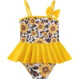 مجموعة تانكيني للأطفال الصغار مكونة من قطعتين: مجموعة ملابس سباحة رائعة للأطفال والبنات تتضمن قميص بدون أكمام على شكل بيبلوم مع لمسات فيونكة مزخرفة وأجزاء سفلية مكشكشة متطابقة للحصول على ملابس كاملة للشاطئ أو حمام السباحة.