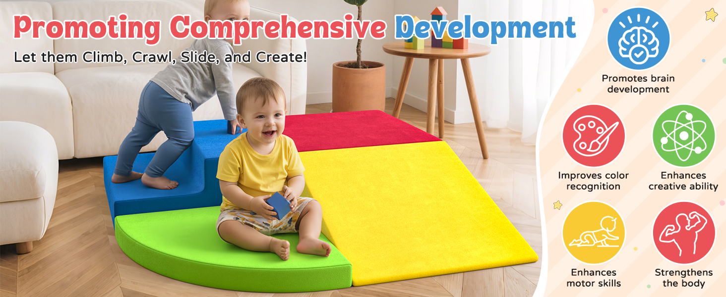 ألوان زاهية وتطور شامل: تتميز مكعبات التسلق الرغوية هذه بألوان حمراء وأصفر وأزرق وأخضر نابضة بالحياة لجذب انتباه الأطفال. بفضل أشكالها المتنوعة، يمكن للأطفال التعرف على الأشكال والأحجام والعلاقات المكانية من خلال تكديس المكعبات وترتيبها والتلاعب بها. تحفز هذه الأنشطة الخيال والإبداع، وتعزز التنسيق بين اليد والعين، والمهارات الحركية، والإدراك المكاني، وتدعم التنمية الشاملة في المجالات الجسدية والاجتماعية والعاطفية.