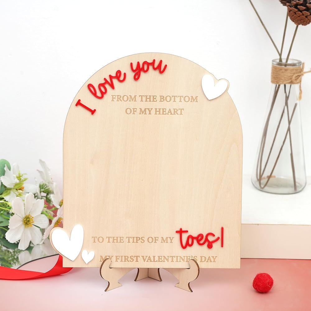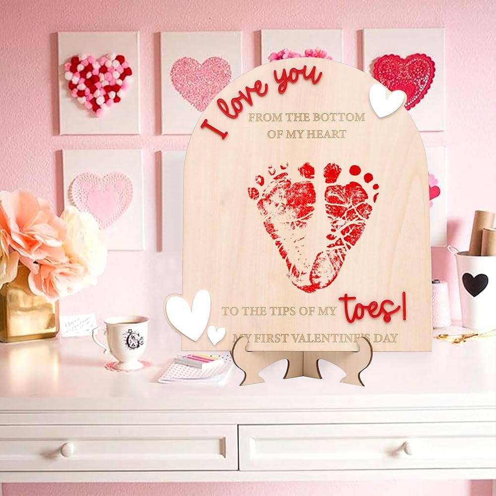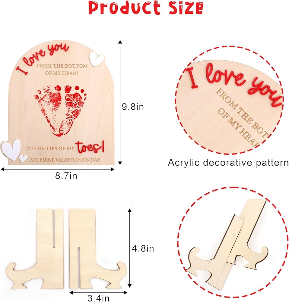 MY FIRST VALENTINE FOOTPRINT WOODEN BOARD: DIY Valentine's Day footprints express sincere emotions. Personalized footprints are made of tough wooden materials, durable and long-lasting, creating a unique and touching artwork
