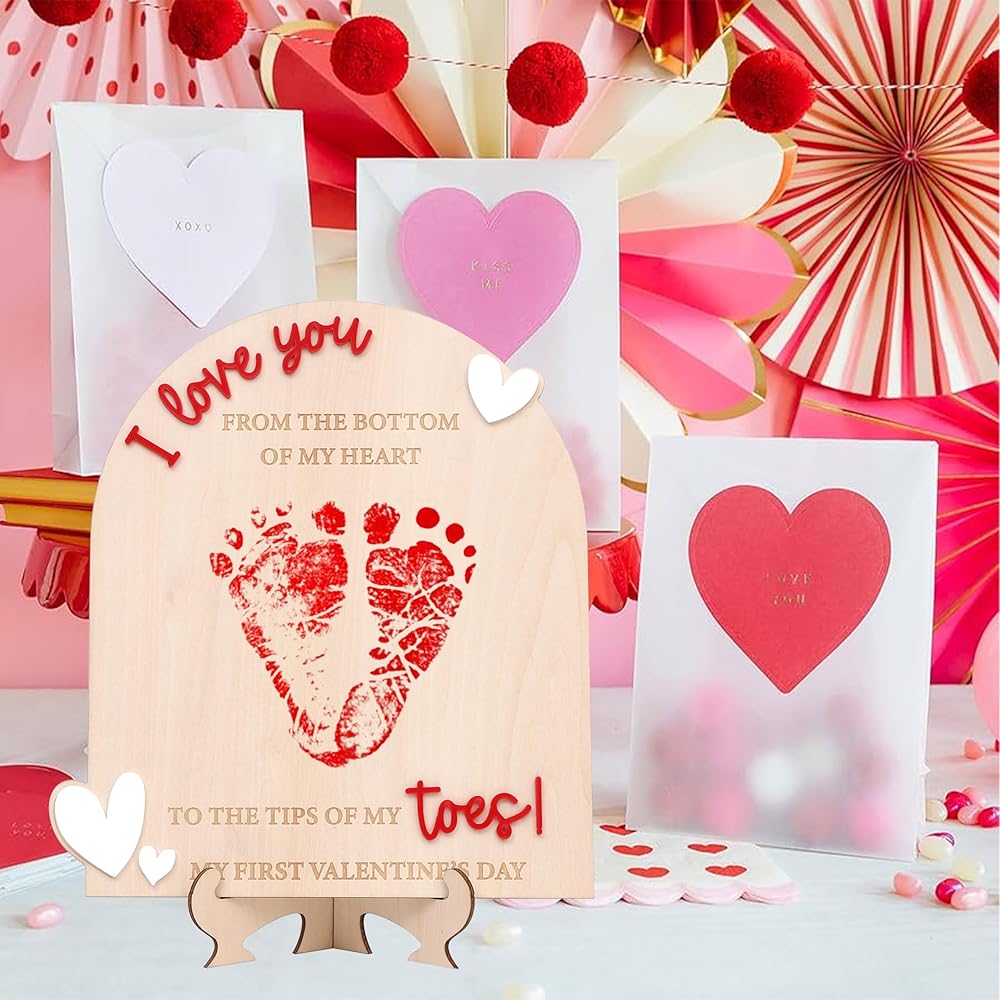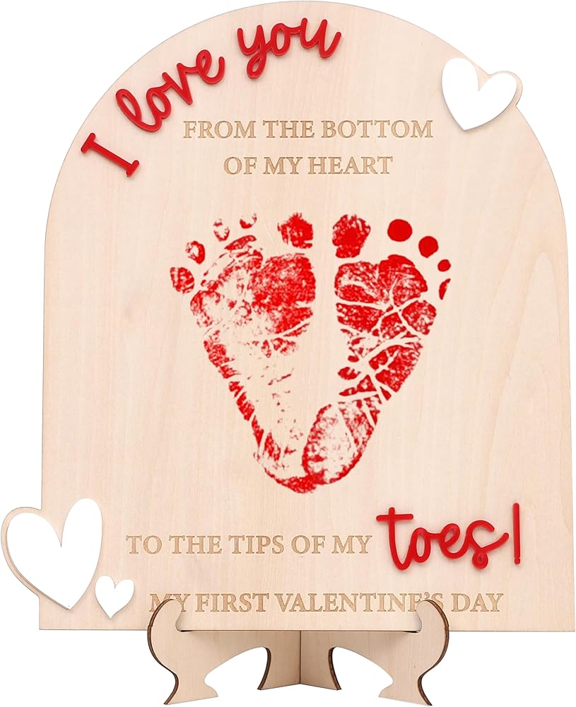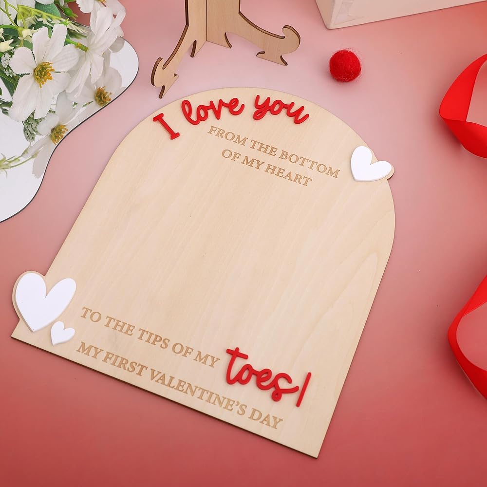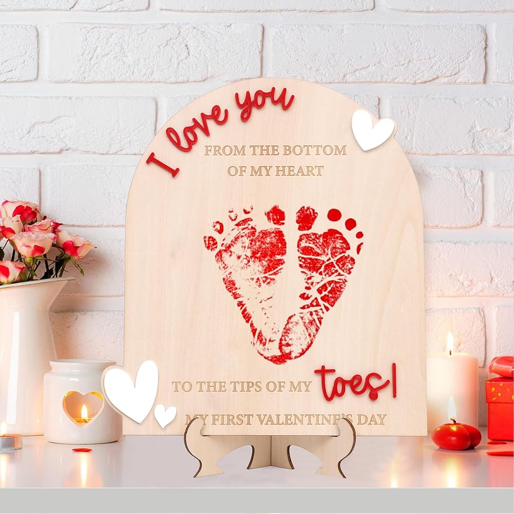 MY FIRST VALENTINE FOOTPRINT WOODEN BOARD: DIY Valentine's Day footprints express sincere emotions. Personalized footprints are made of tough wooden materials, durable and long-lasting, creating a unique and touching artwork