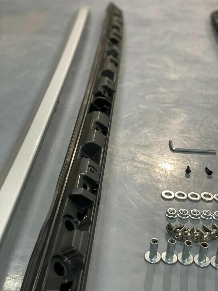 Multipurpose:The Roof Rack Crossbars allow you to mount a variety of attachments for bikes, skis, snowboards, and more outside the vehicle. Premium chrome finish is tested to withstand the harshest environments. Tightly integrated, custom design for a factory-installed look. Made with high-quality aluminum and advanced plastics for lightweight, superior strength, and durability.