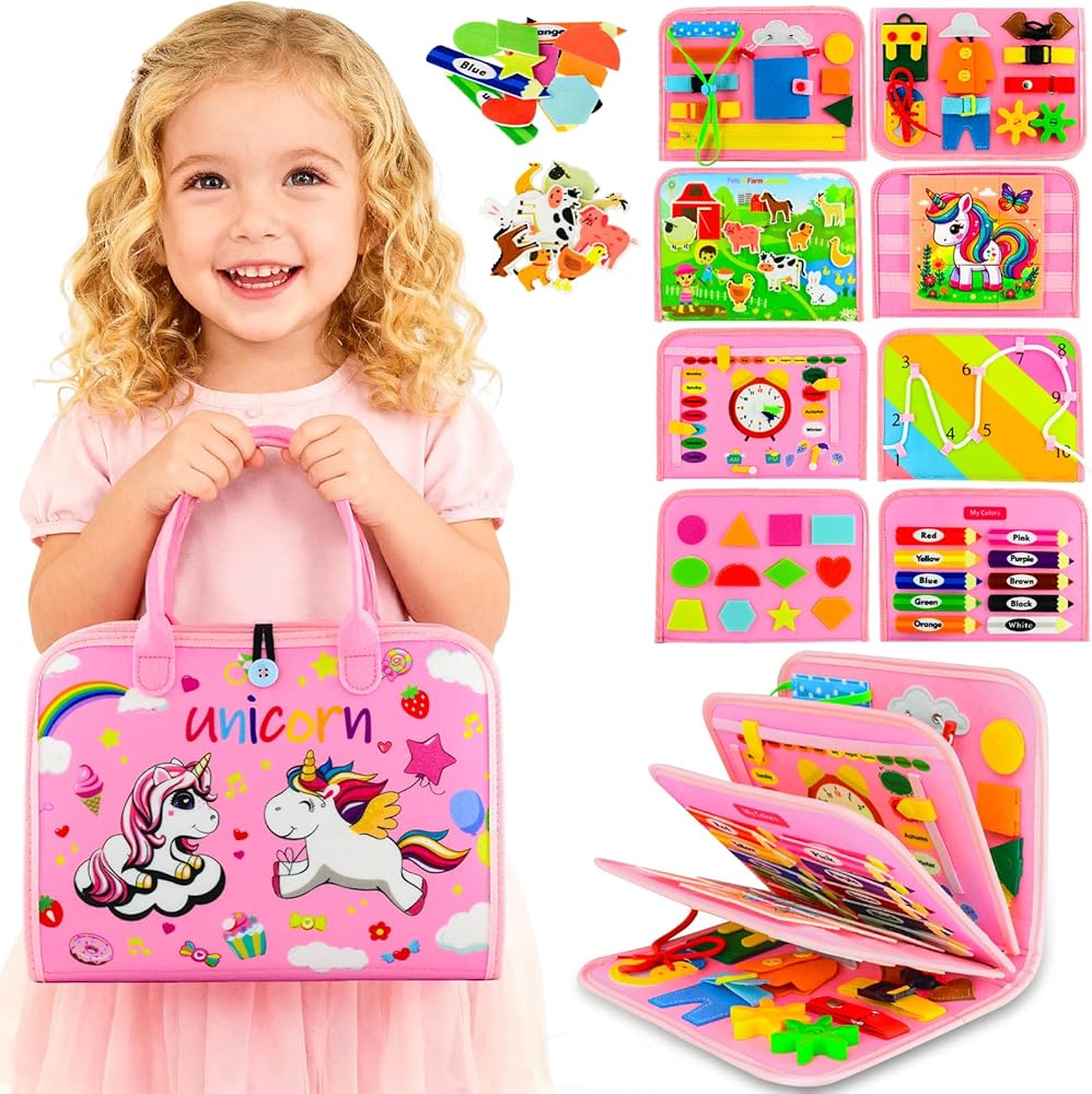ألعاب مونتيسوري للأطفال الصغار، ألعاب تعليمية تعليمية للكتاب المشغول للفتيات الصغيرات، لعبة كتاب الأنشطة الحسية مع المهارات الحياتية، لعبة سفر للأطفال للسيارة الطائرة هدية عيد ميلاد للأطفال الصغار