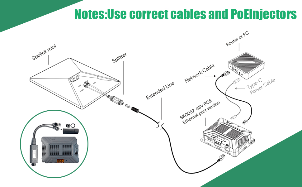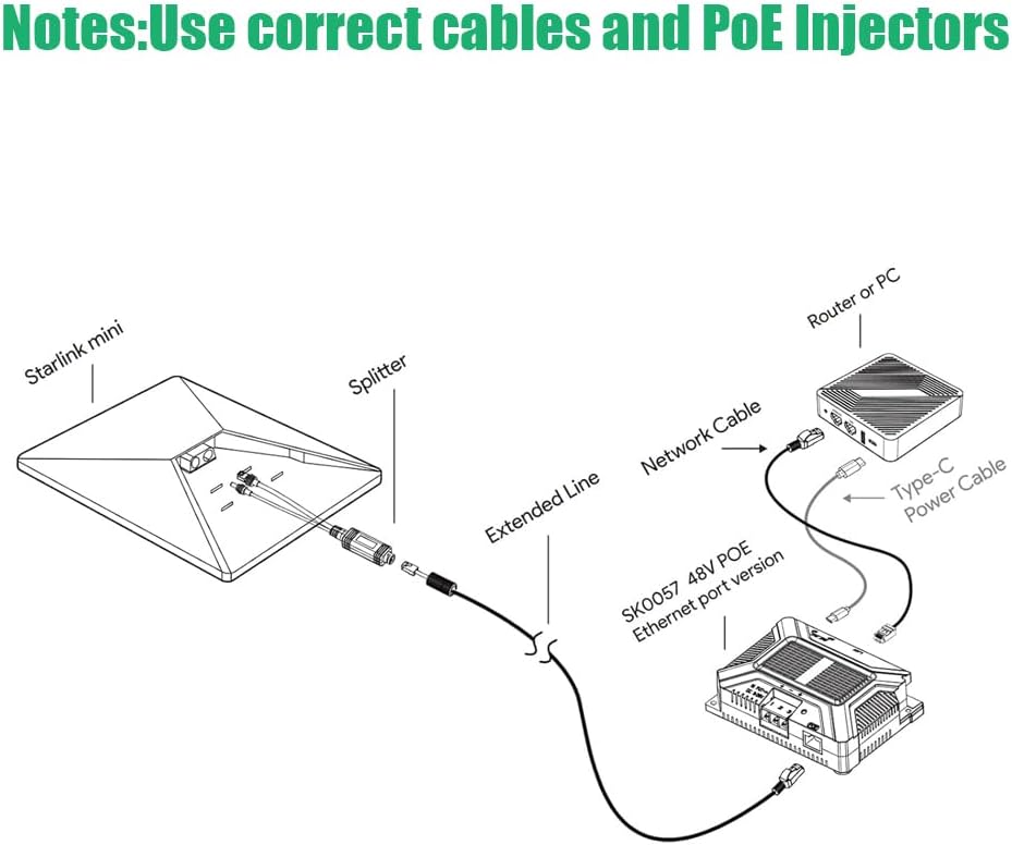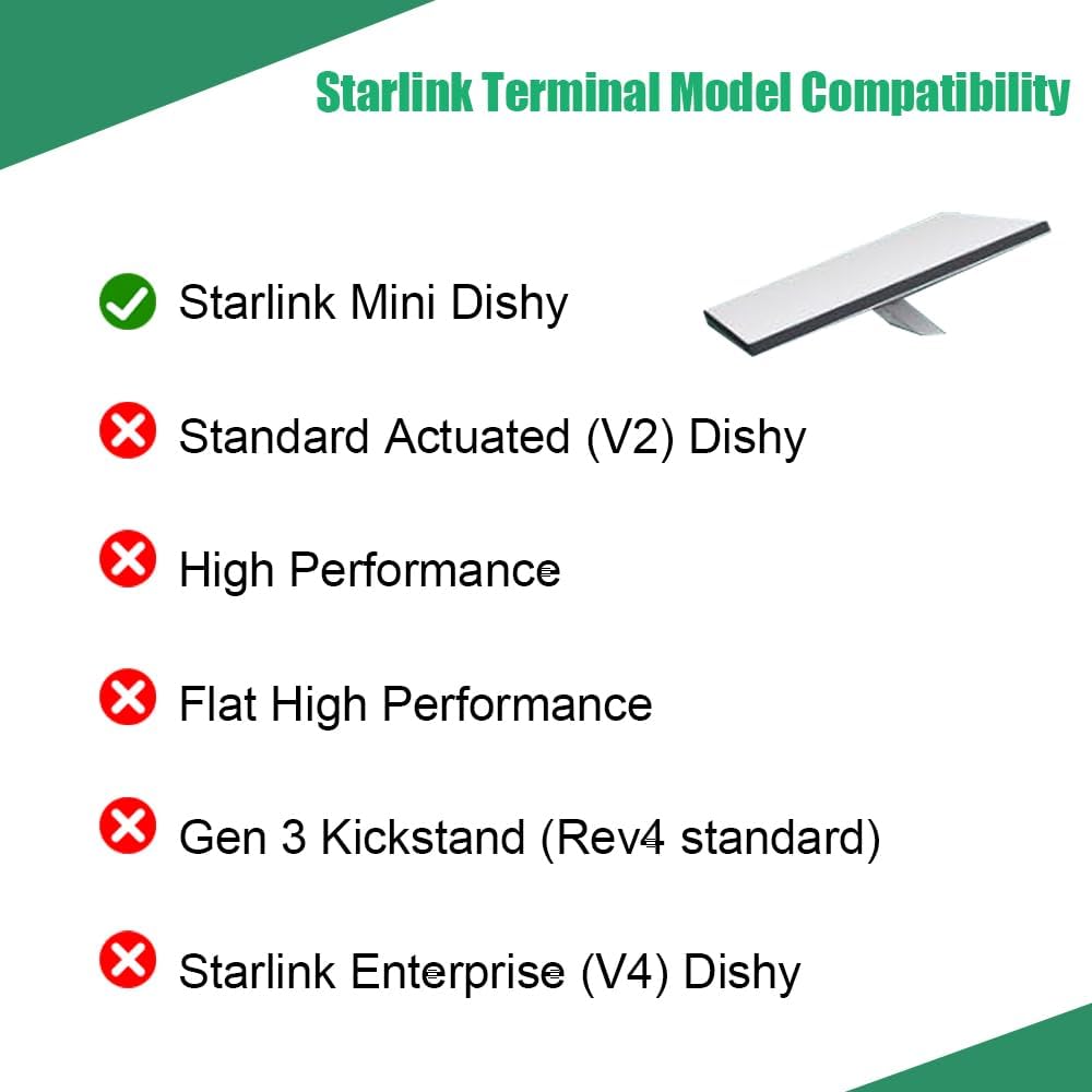 【توافق واسع وتطبيقات متعددة الاستخدامات】 تم تصميمه خصيصًا ليكون بمثابة حاقن PoE لـ Starlink Mini، وهو متوافق تمامًا مع كابل Starlink Mini الأصلي. مثالي لاحتياجات الطاقة الميدانية لـ Starlink Mini، بما في ذلك التركيبات خارج الشبكة، والمركبات الترفيهية، والقوارب (للاستخدام البحري)، وكرفيق للطاقة الشمسية Starlink Mini للحصول على استقلالية مطلقة للطاقة.