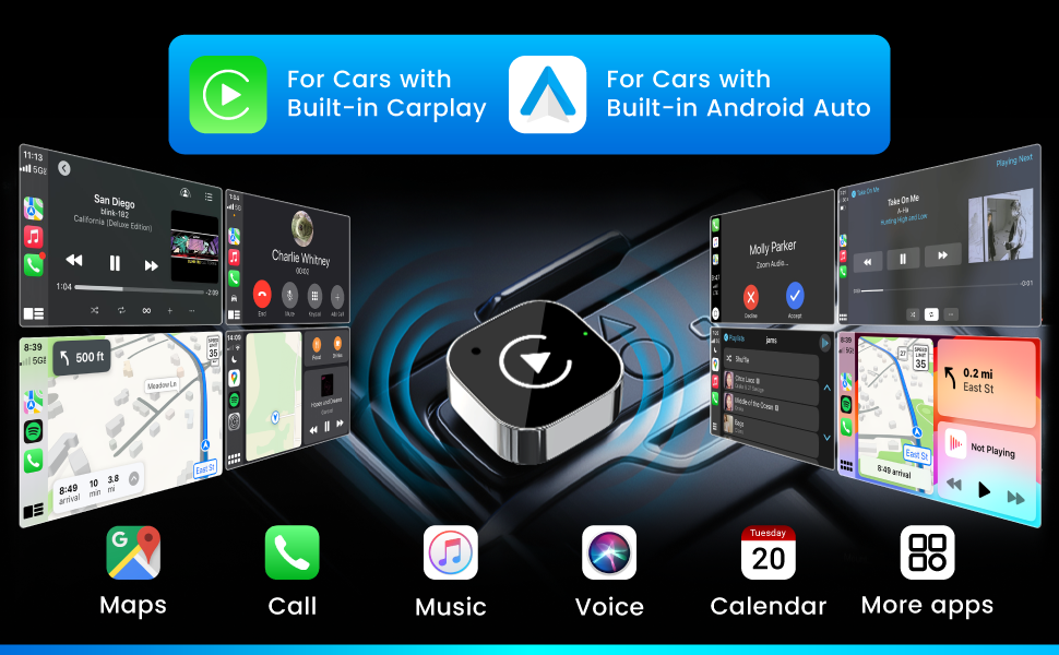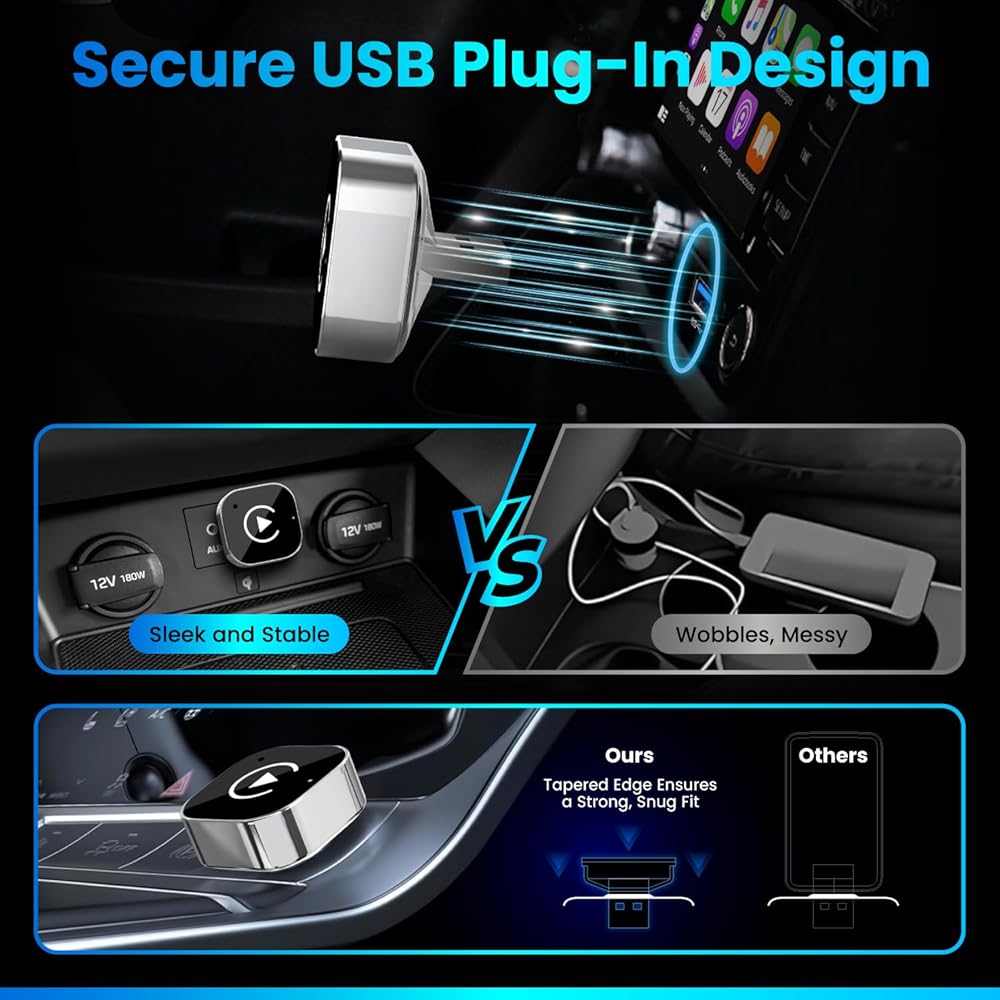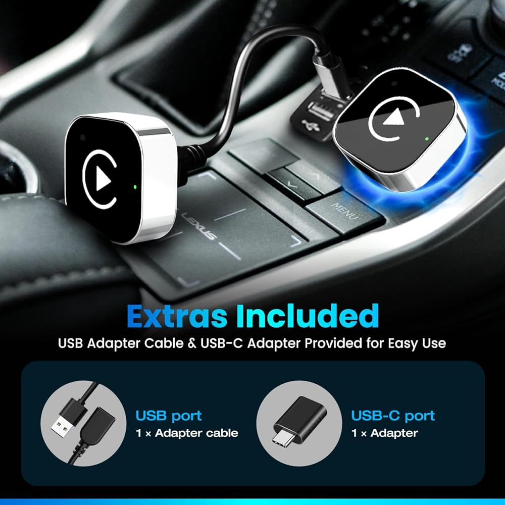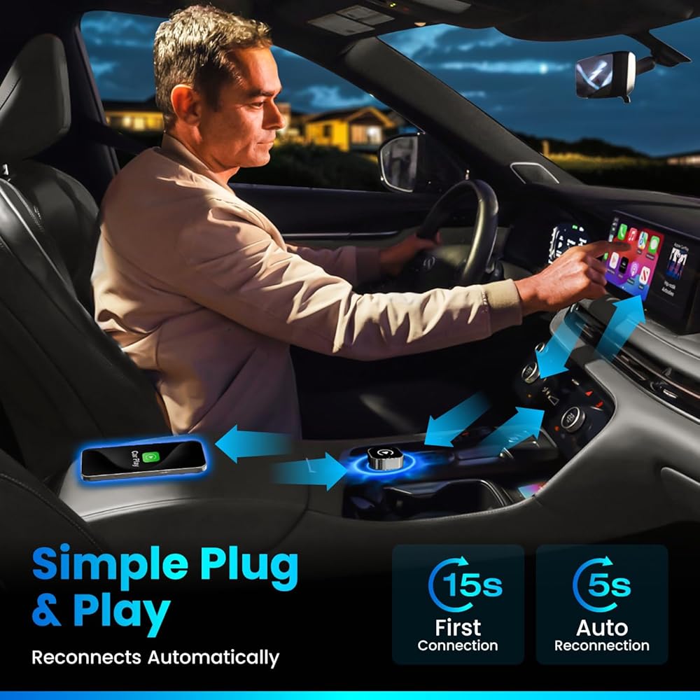 ✅ ترقية لاسلكية فورية: قم بتحويل CarPlay أو Android Auto السلكي في مصنع سيارتك إلى نظام لاسلكي بالكامل في ثوانٍ. استمتع بتجربة التنقل بدون استخدام اليدين والمساعدين الصوتيين والمكالمات والمراسلة والموسيقى دون توصيل هاتفك في كل رحلة. مصمم للسائقين الذين يريدون الراحة الحديثة في أي سيارة مع CarPlay السلكي المدمج أو Android Auto.