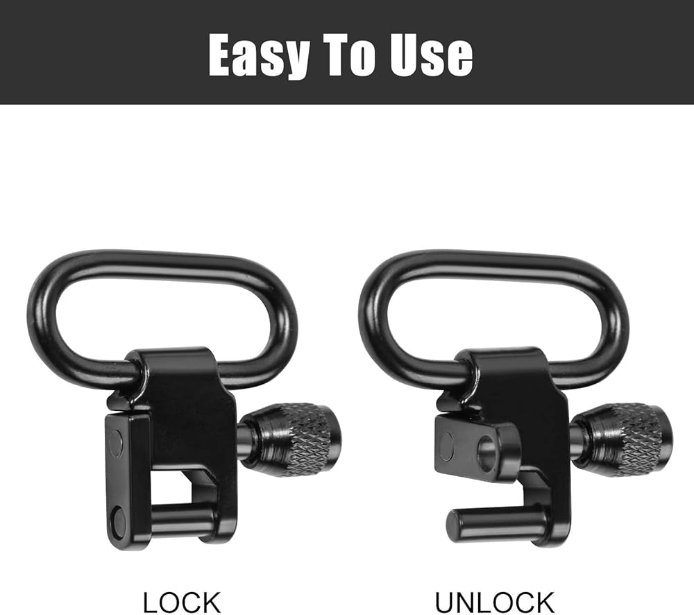 【Sturdy Sling Swivels】Heavy-duty rifle sling swivel fits slings up to 1.25" wide. Tri-lock design provides secure locking for safety. Swivels tested to 300 pounds