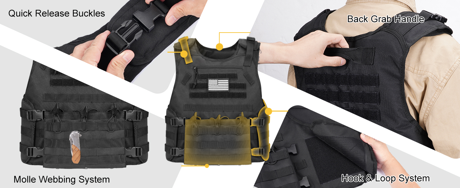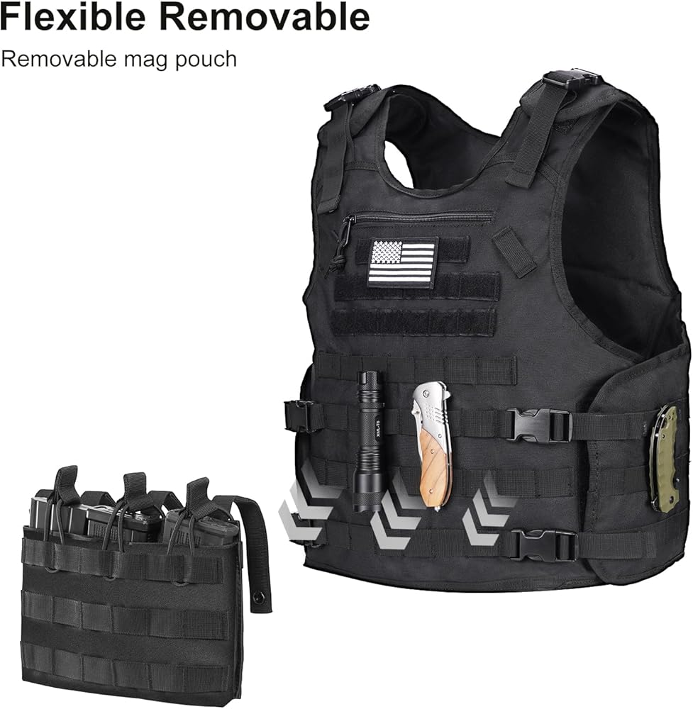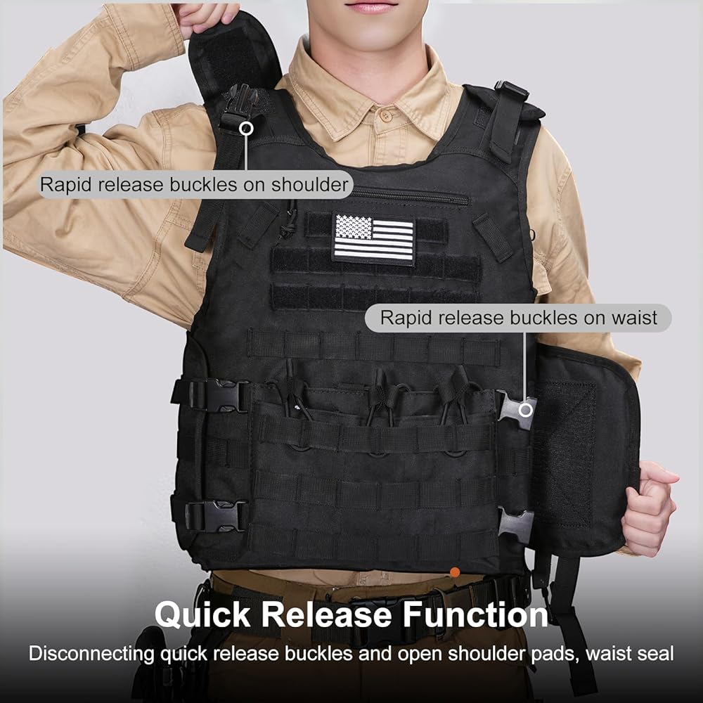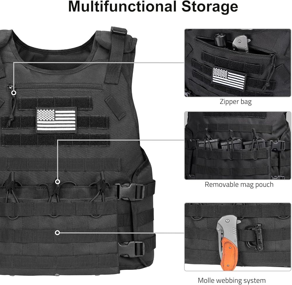بسعة كبيرة: تحتوي هذه السترة التكتيكية على جيوب تخزين متعددة. بما في ذلك حقيبة بسحاب في الجزء العلوي الأمامي لتخزين الأشياء الصغيرة، وثلاثة جيوب قابلة للإزالة في الأسفل مع أشرطة مرنة لمنع الجهاز من السقوط.