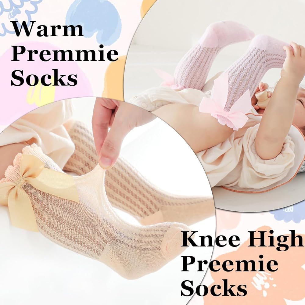 1. Our cotton long preemie socks with fine elasticity, comfortable to wear, stay on all night and day, won't pressure baby's feet, fitting most babies.