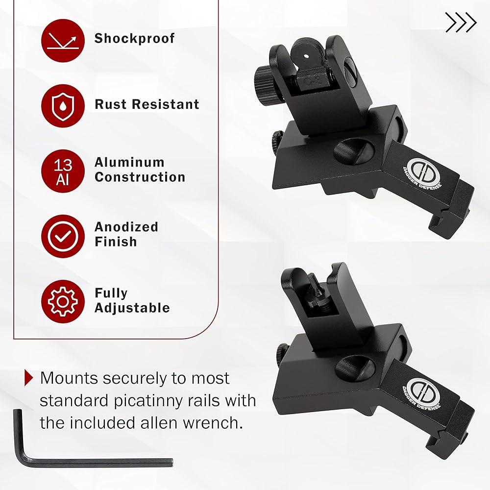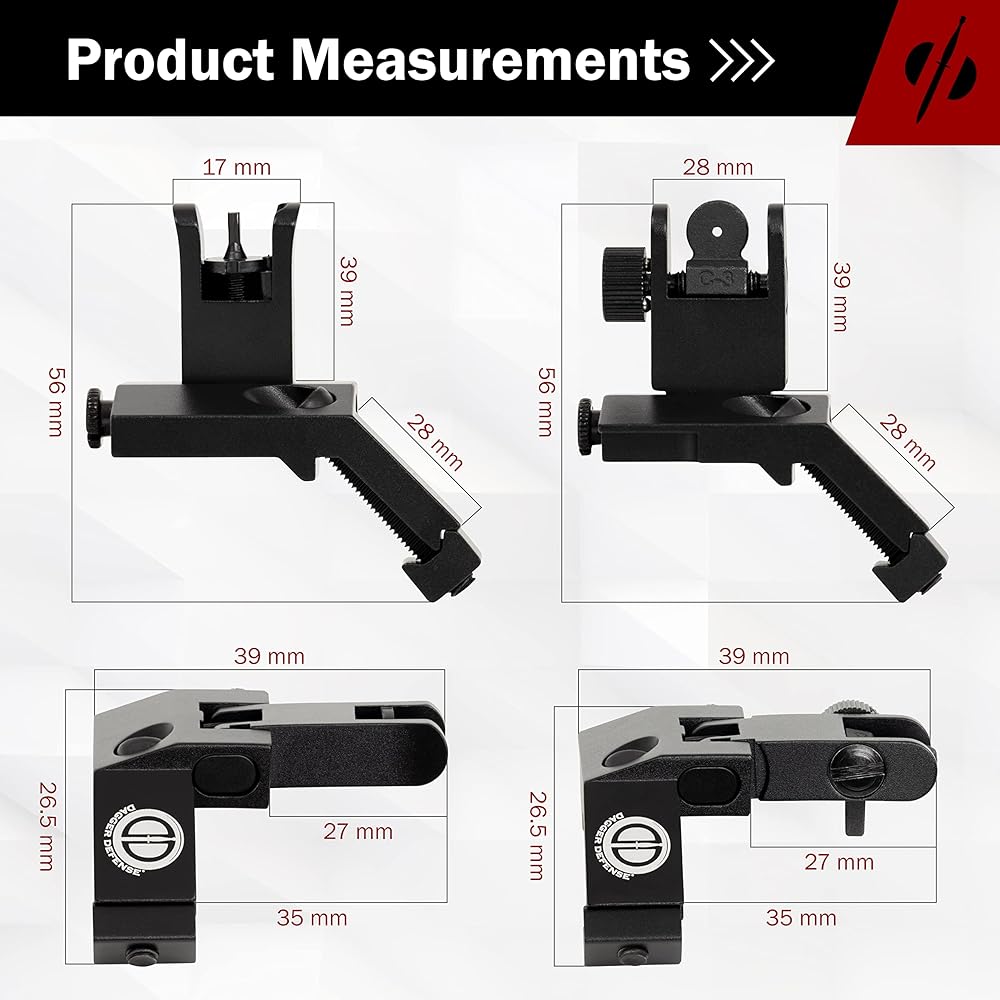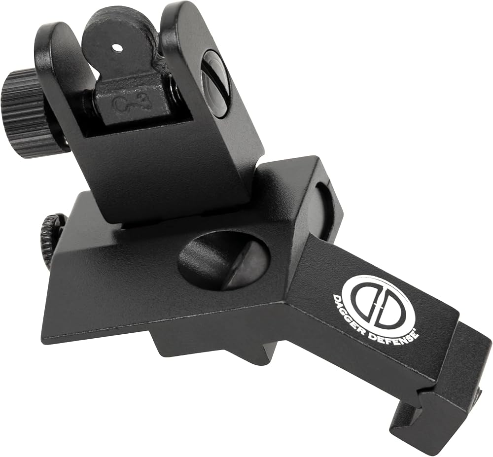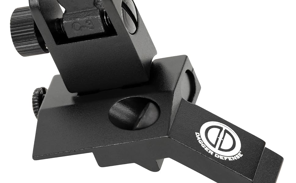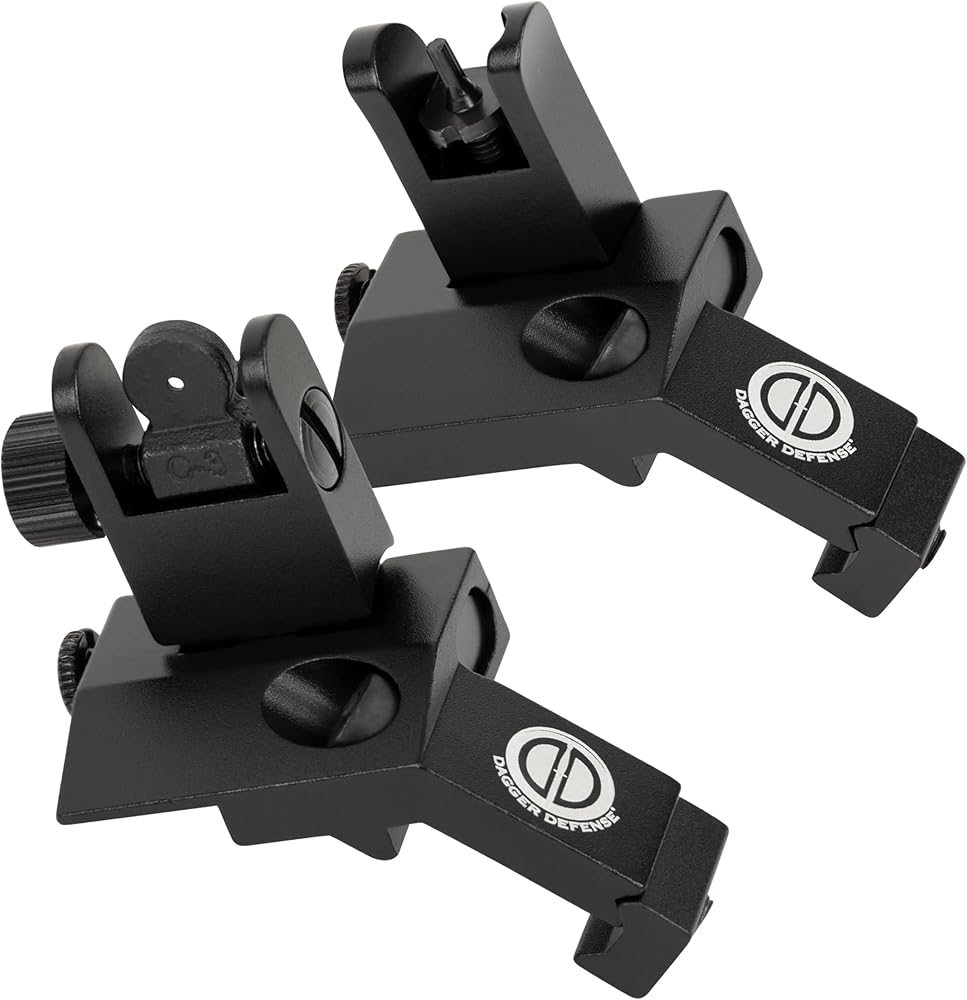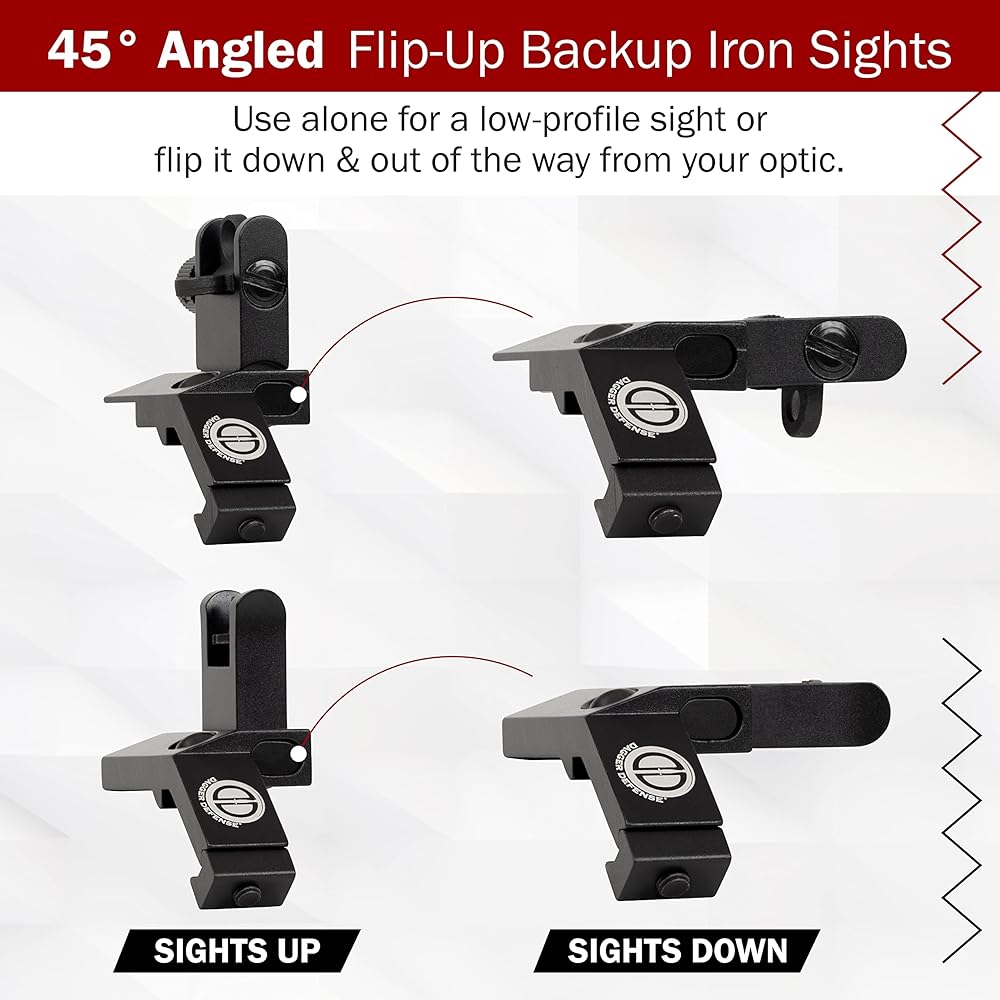 - شركة مملوكة للطبيب البيطري القتالي - Dagger Defense flip up BUIS 45 درجة Picatinny Rail مثبتة على مشاهد حديدية احتياطية.