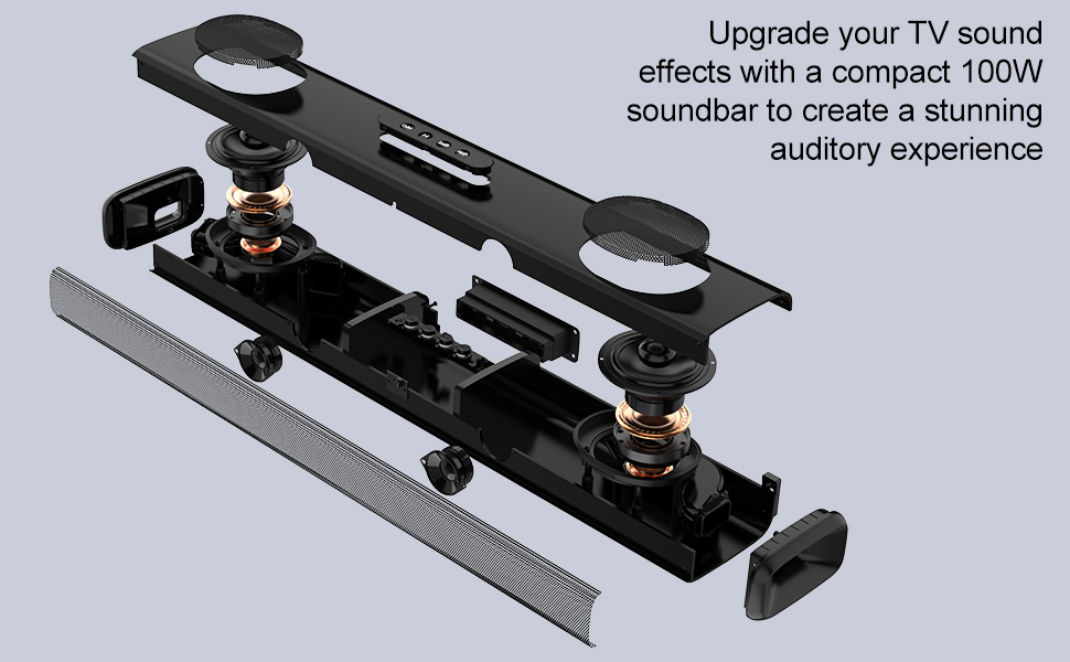 100W Sound Bar for Smart TV, 2.2 ch Soundbar with Bluetooth 5.3/ARC/Opt/AUX Connect, Surround Sound System for TV with 4 Speakers, Home Audio Surround Sound System for TV PC Projector
