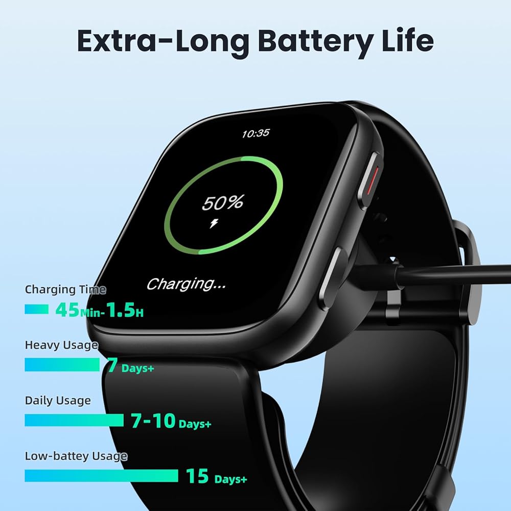 Long Battery & Multifunctional: The watch with 1 hrs of charging, 7 days of normal use and about 15 days of standby time, offers 50+ sports modes. During your exercise, Blood pressure watches for men will record data like heart rate, steps, calories burned, distance and active hours in real time. Besides, the fitness watch features Breathing,Weather,Alarm,Timer,Pedometer,Brightness adjustment,Stopwatch. Note: Moisture entering the watch can cause the watch's measurement function to malfunction.