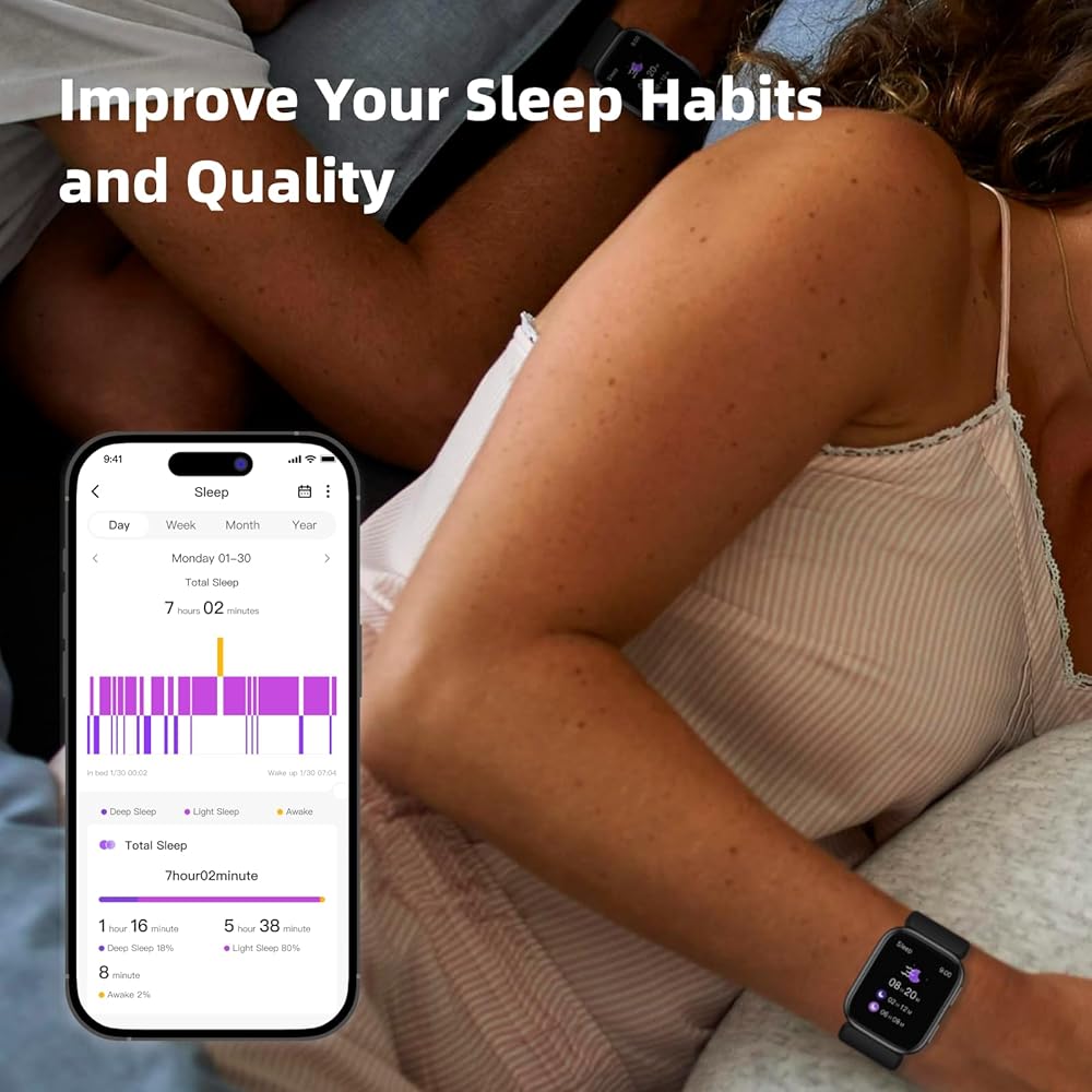 مراقب النوم ومتتبع النشاط تلقائيًا: يمكن لساعة مراقبة النوم مراقبة جودة النوم (18:00-12:00) بدقة وتوفر تحليلاً شاملاً لجودة النوم. استخدم أجهزة مراقبة النوم لاكتشاف جودة نومك الليلي، مما يساعدك على تحسين عادات نومك وتقييم جودة مراحل دورة نومك اليومية لإنشاء روتين أكثر صحة. تقوم الساعة الذكية لضغط الدم بتسجيل الخطوات اليومية وعداد المسافة والسعرات الحرارية المحروقة والدقائق النشطة تلقائيًا.