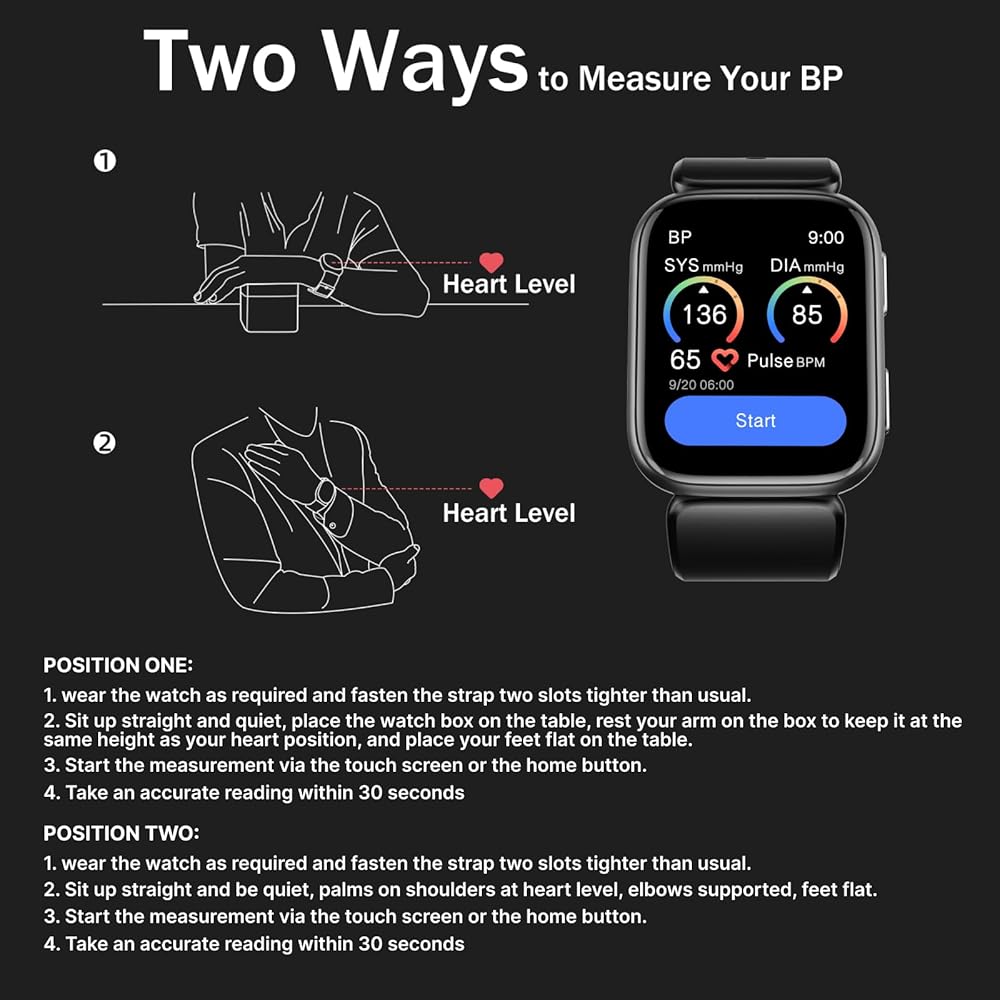 ساعة ذكية من BP Doctor مقاس 1.95 بوصة، ساعة ذكية لضغط الدم مع سوار مضخة هواء، ساعة ضغط الدم مع مراقب معدل ضربات القلب أثناء النوم، عداد الخطى، ساعة مراقبة تدعم مشاركة البيانات ومراقبة التذكير