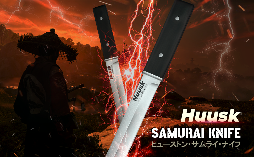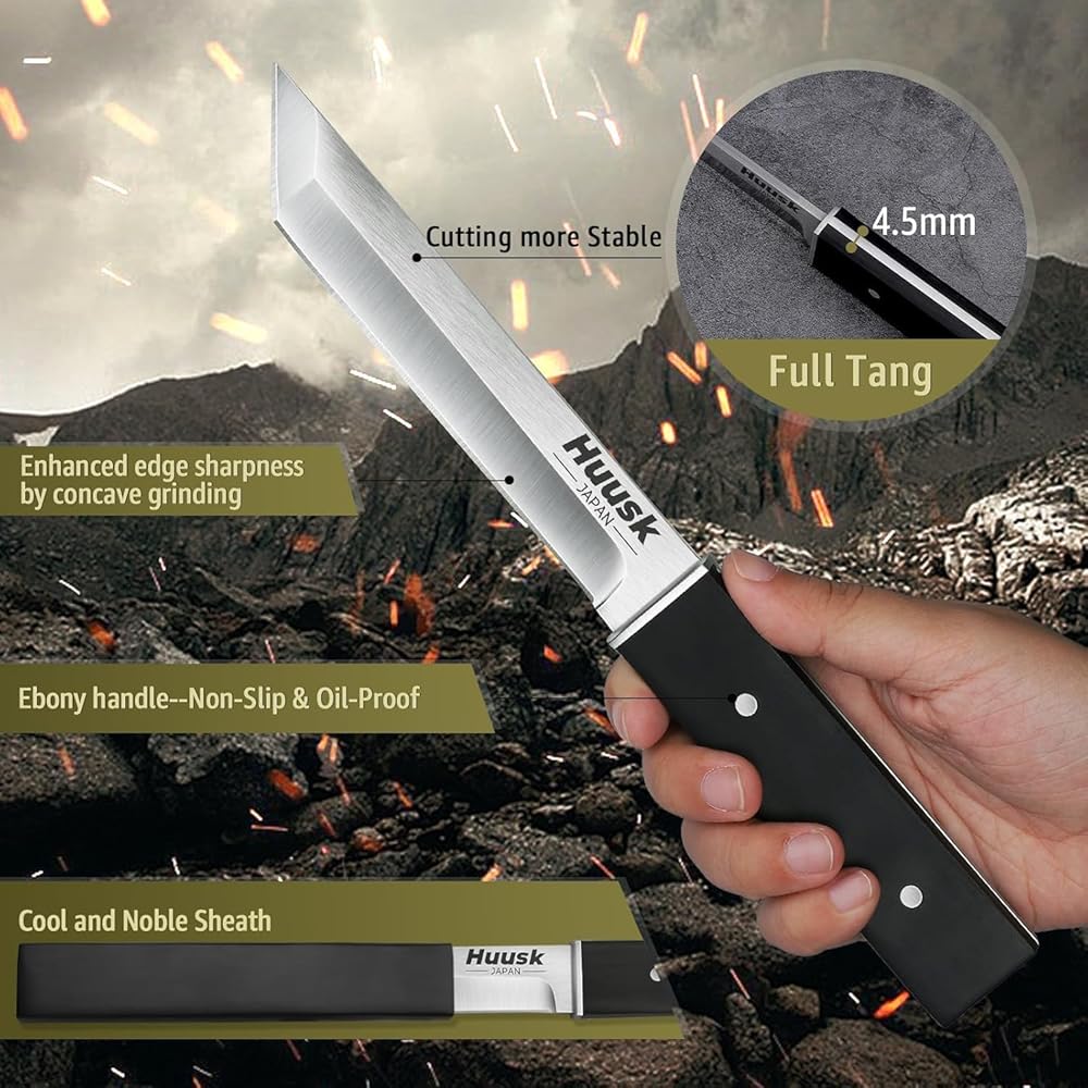 سكين شفرة ثابتة يابانية من huusk - سكين تانتو ساموراي مع غمد - سكاكين بقاء تانغ كاملة مع مقبض خشبي - سكاكين بوشكرافت للتخييم في الهواء الطلق، هدية للرجال والنساء