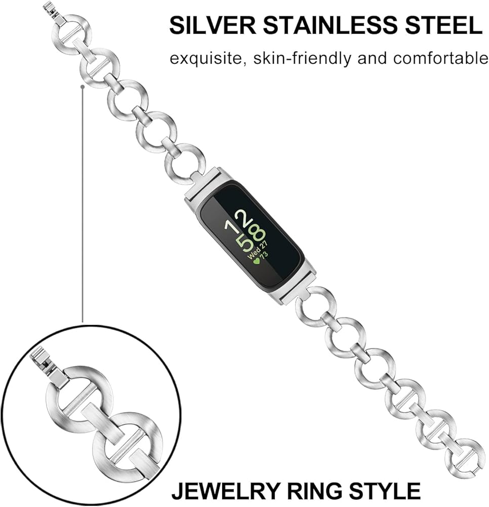 Dhwazz Women Band for Fitbit Inspire 3 / Inspire 2 HR Dressy Jewelry Stainless Steel Strap