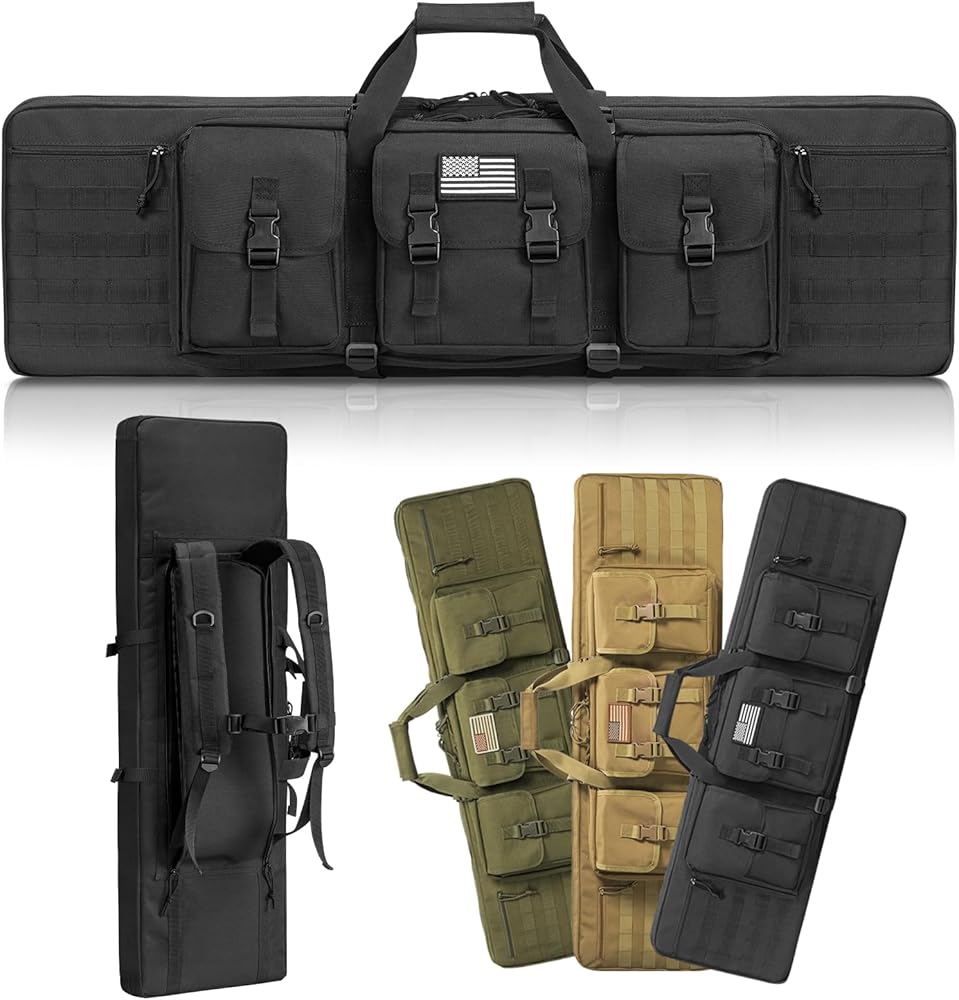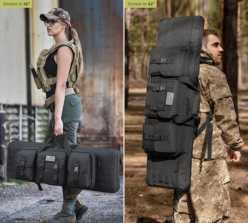 حقيبة بندقية ناعمة مقاس 36 بوصة و42 بوصة و48 بوصة، وحقيبة بندقية مزدوجة وحقيبة ظهر للبندقية مع حزام ظهر وسحاب قابل للقفل للرماية في الهواء الطلق والصيد وتخزين الأسلحة النارية ونقلها