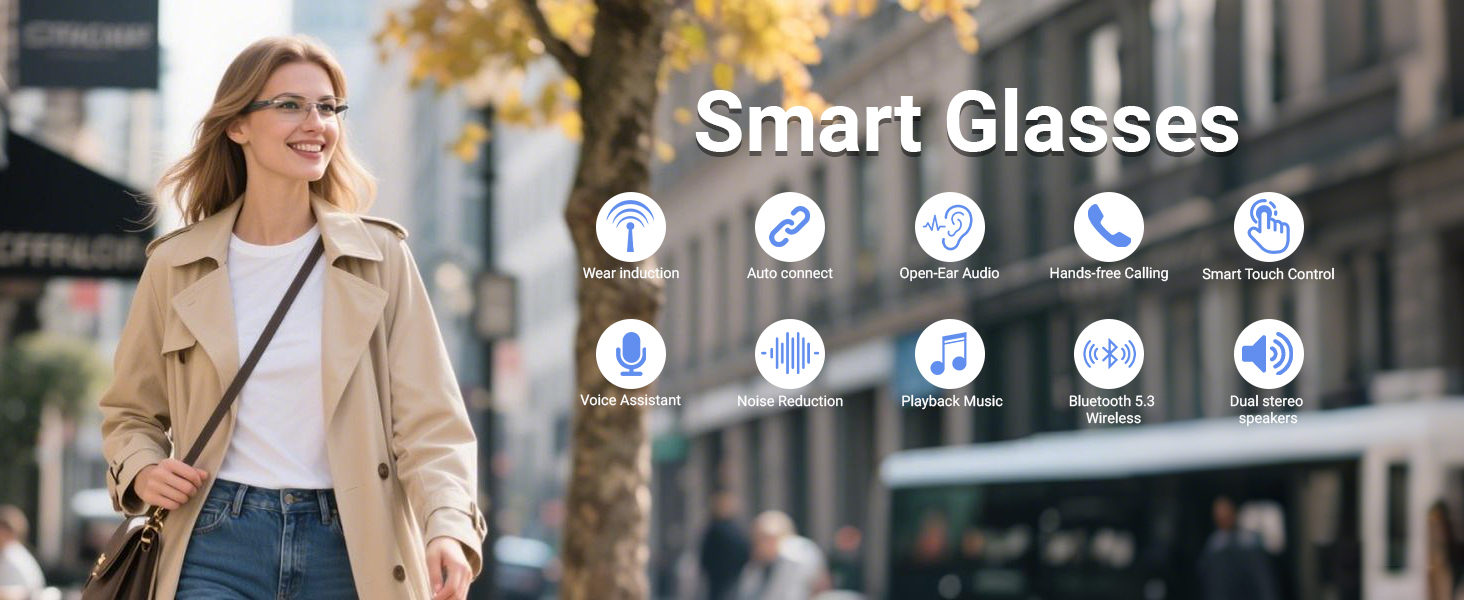 • 【مكبرات صوت عالية الدقة مفتوحة للأذن + تقليل الضوضاء الذكي + ميكروفون مدمج - ابق على علم، مكالمات واضحة تمامًا】تتميز نظارات البلوتوث للنساء والرجال بمكبرات صوت استريو مفتوحة الأذن، مما يوفر صوتًا عالي الدقة غامرًا وميكروفونات مزدوجة لإلغاء الضوضاء تلتقط صوتك بوضوح، حتى في الشوارع أو المكالمات المزدحمة، من أجل الوضوح وجهًا لوجه. تصميم مريح للأذن المفتوحة طوال اليوم: لا يوجد ألم في الأذن أو ارتفاع درجة الحرارة مثل سماعات الرأس. يمكن إقرانه بسهولة مع iOS وAndroid والمزيد للموسيقى والمكالمات بدون استخدام اليدين والإشعارات - وهو مثالي للسلامة أثناء التنقل