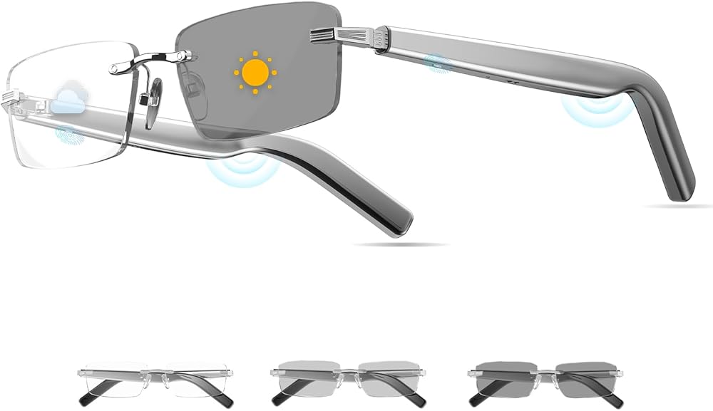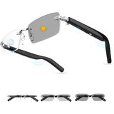 نظارات ذكية، نظارات بلوتوث فوتوكروميك بدون إطار مع مكبر صوت وميكروفون صوت عالي الدقة مفتوح الأذن - حماية من الأشعة فوق البنفسجية 400، التحكم الصوتي والمكالمات بدون استخدام اليدين، نظارات شمسية آمنة للجنسين للموسيقى/القيادة in Kuwait