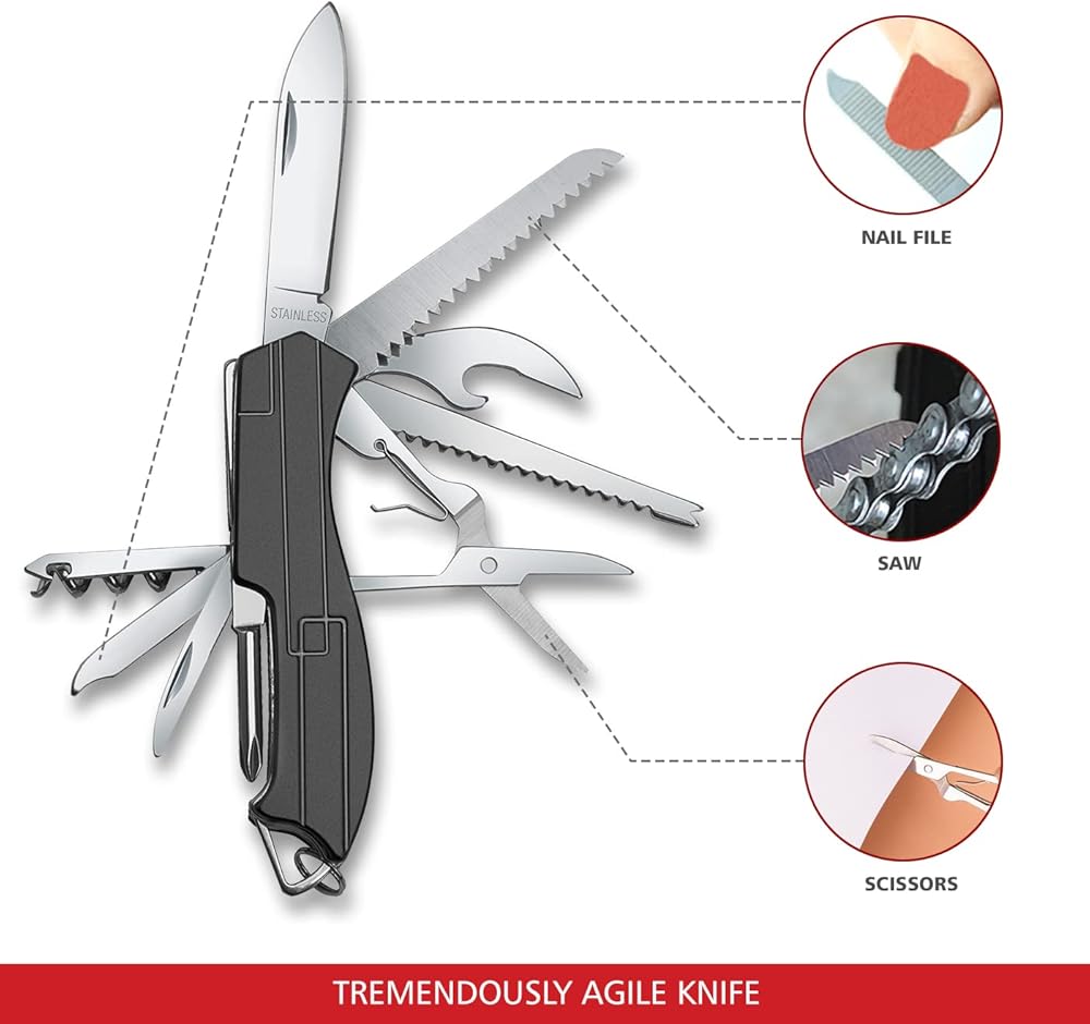 • حمل وحمل منزلي مثالي: جيب متعدد الأدوات - تم تصنيعه بأعلى جودة من الدقة لسنوات من الاستخدام - صغير الحجم ومتين وجيد لكل من المنزل والمعركة - الأمر كله يتعلق بحشر العديد من الأدوات المفيدة في مقبض أحمر كلاسيكي يمكن أن يتناسب تقنيًا مع الجيب - الآن، هذا جيب متعدد الأدوات