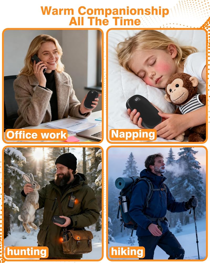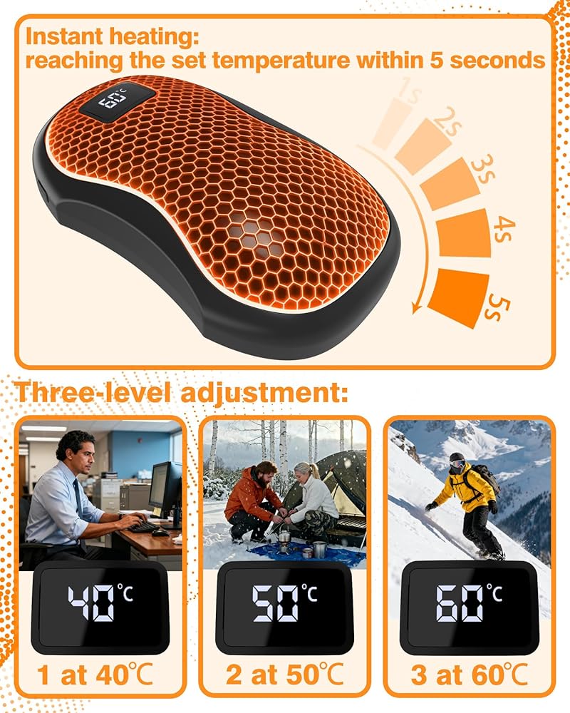 • تصميم دقيق: سخان صغير محمول أنيق، سهل الحمل، دافئ وسلس، محمول وصغير الحجم، بحجم راحة اليد، خفيف الوزن، يمكنك اصطحاب حقيبة تدفئة اليد معك، فهي تحافظ على دفء يديك طوال اليوم أثناء العمل في المكتب، أو حضور الفصول الدراسية، أو التخييم، أو الصيد، أو المشاركة في أي أنشطة خارجية خلال الشتاء البارد