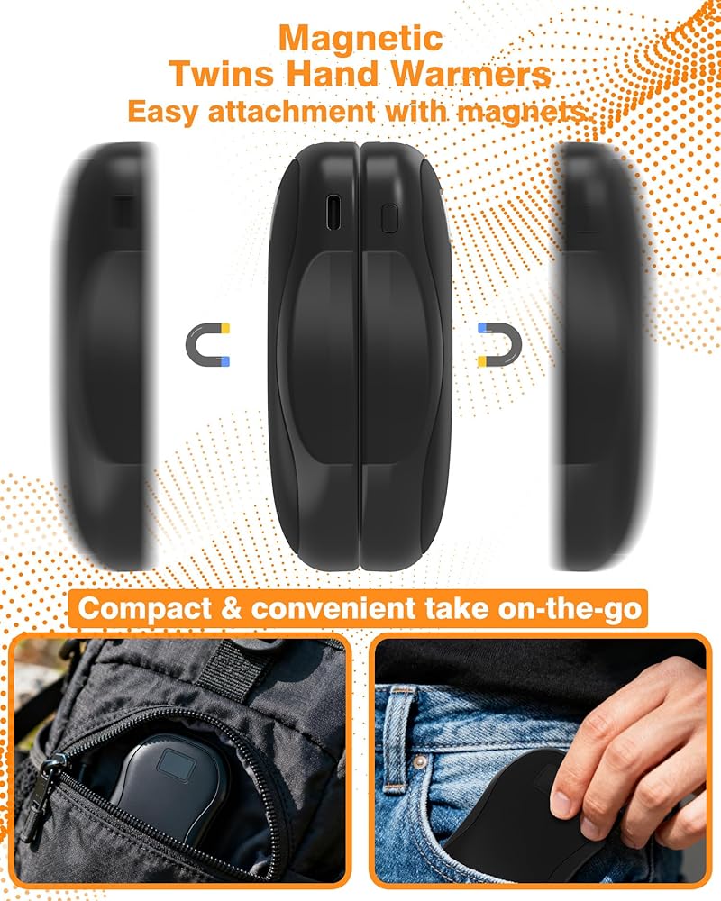 • مغناطيسي 2 في 1: مغناطيس قوي يحافظ على السخانات المحمولة معًا لسهولة التخزين والنقل. يمكنك أيضًا فصلها وحملها في يدك أو وضعها في جيبك، وسيجلب تأثير تسخين غير متوقع.