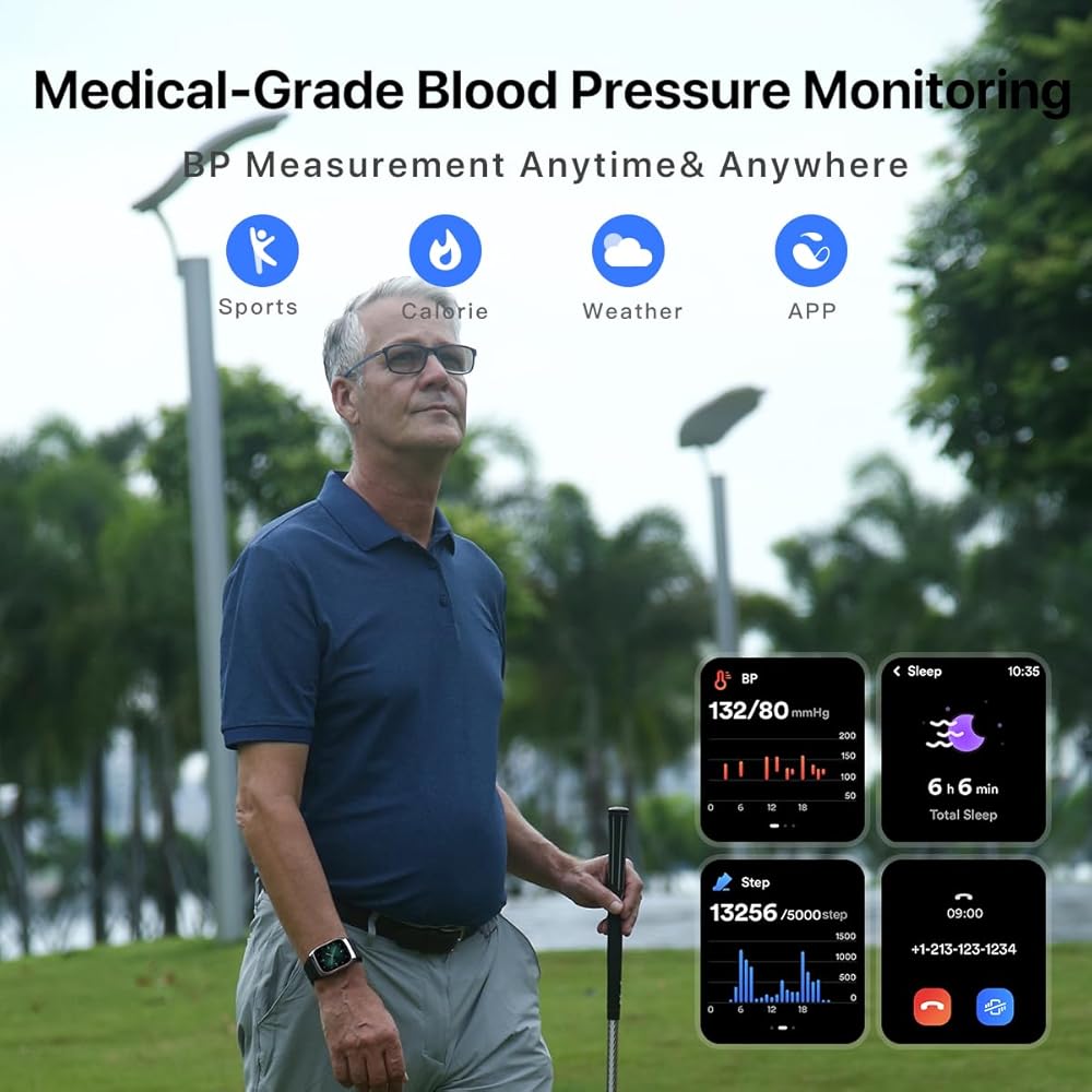 • ساعة ذكية لمراقبة ضغط الدم ذات أساور مزدوجة قابلة للنفخ حاصلة على براءة اختراع: تتميز الساعة الذكية BP Doctor MED بحزام وسادة هوائية مزدوج قابل للنفخ حاصل على براءة اختراع، تصميم الكفة المزدوجة يحاكي الملاءمة المريحة لأجهزة مراقبة ضغط الدم التقليدية، مما يضمن قياسات أكثر دقة. بالمقارنة مع أجهزة قياس ضغط الدم التقليدية عبر المعصم، يتيح لك تصميم الساعة خفيف الوزن مراقبة ضغط الدم وصحتك في أي وقت وفي أي مكان.