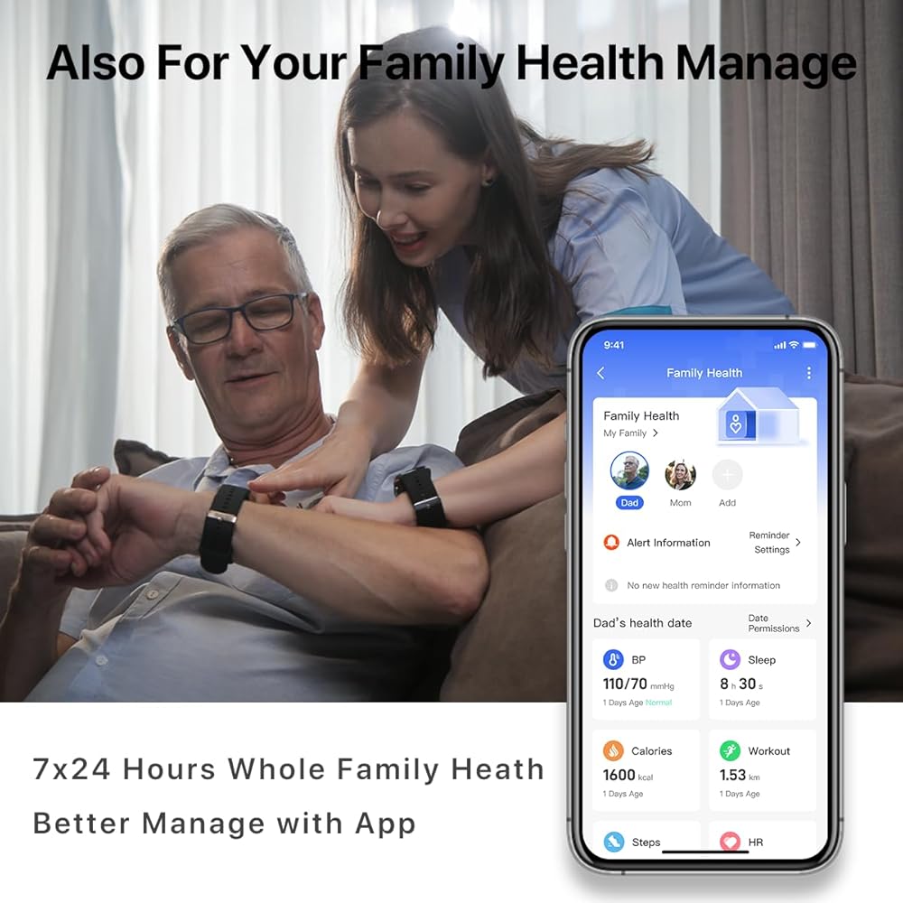 ساعة ذكية لقياس ضغط الدم مع حزام مزدوج حاصل على براءة اختراع، مراقب ضغط الدم في المعصم، مراقب النوم، تطبيق تتبع رياضي لنظامي Android وiOS، ساعة ضغط الدم تدعم مشاركة البيانات