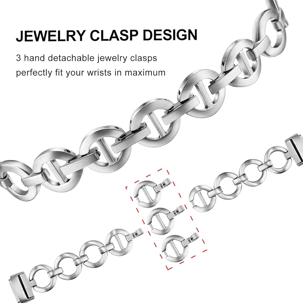 • EASY TO RESIZE: Fit wrists 5.5'' to 7.7'' (140mm to 195mm), covering the majority of women wrists. 3 hand detachable jewelry buckles, remove easily to adjust band length.