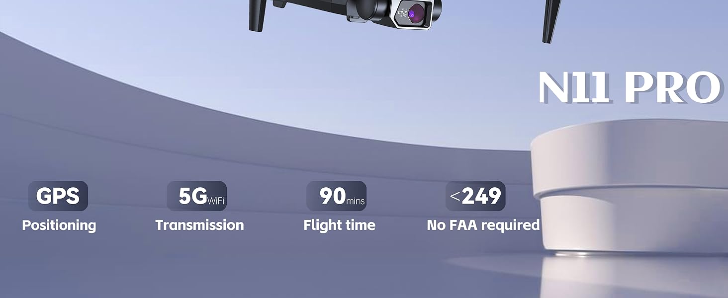 【Under 0.55lb Mid-sized Drone, No FAA Registration】Designed with a unique material composition, the N11 PRO is a remarkably valuable mid-sized GPS drone (not mini ones). Its weight is kept under 0.55lb, eliminating the need for FAA registration. This drone provides a perfect solution for hassle-free flying in the States without FAA, making it ideal for capturing stunning footage on the go.