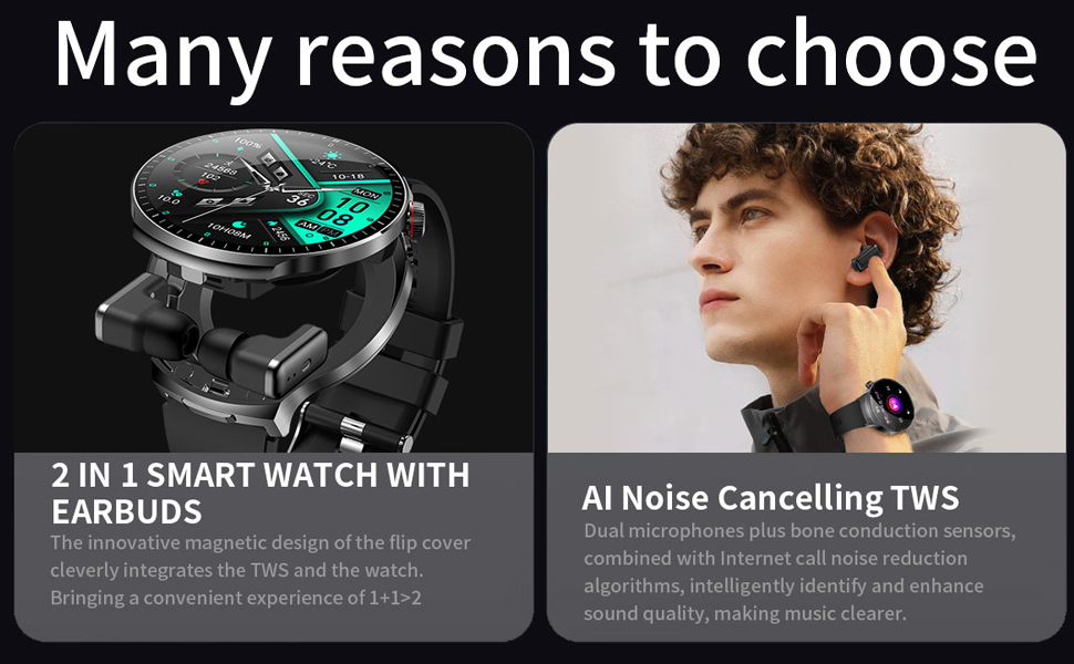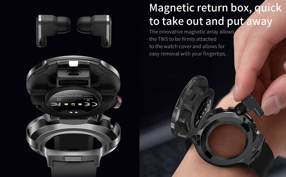 Smart Watch with Bluetooth Earbuds, 1.85-Inch Round HD Screen, Military Style, IP67 Waterproof, 100+ Sports Modes, Heart Rate Monitor, Sleep Tracker, Music Control