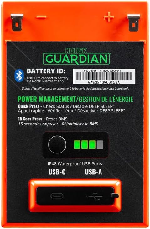 مراقبة البلوتوث باستخدام تطبيق Norsk Guardian - راقب صحة البطارية وأدائها من هاتفك للحصول على الثقة والتحكم في الجليد أو الماء.
