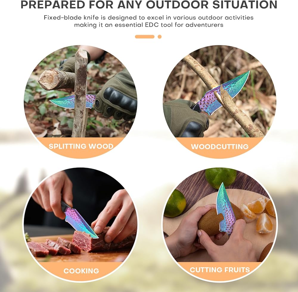 شفرة حادة للغاية: تتميز السكين ذات الشفرة الثابتة ذات الغمد بشفرة ألمانية عالية الكربون، مما يوفر مقاومة فائقة للتآكل والمتانة والاحتفاظ بالحواف، وهي جاهزة لأي مهام صعبة. مصممة لمواجهة تحديات الحياة اليومية والأنشطة الخارجية، وهي مثالية للأنشطة مثل صيد الأسماك والبقاء على قيد الحياة والمشي لمسافات طويلة والتخييم. إنها متعددة الاستخدامات لمهام القطع المختلفة، سواء للمغامرات الخارجية أو الاستخدام اليومي