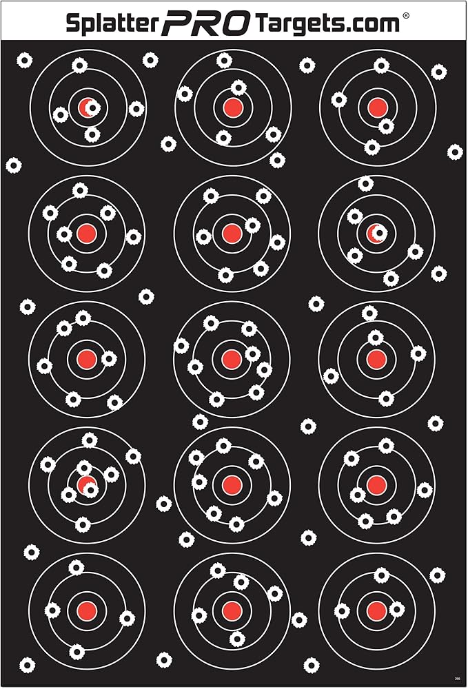 Compare our Splatter Targets to anything on the market. Our targets lay flat and STAY FLAT. If you've ever had a target curl up on you when you're at the range you know how frustrating that can be. Our targets are printed on sturdy 10 pt. board stock, not cheap paper. Our goal was simple. Make the best target on the market and we've done that. The Bright White bullet holes are visible in all light conditions and help you quickly get on target and stay on target. Perfect for air guns, rim fire and center fire rifles and pistols. Our targets work great for sighting in shotguns as well, as they don't get blown to bits.