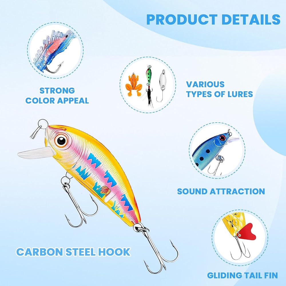 🐋Easter egg filler: Use these fishing lures as fillers for Easter eggs to make Easter more fun. Hide them inside plastic Easter eggs and then let friends search for them in the egg hunt game. This unique and innovative design for traditional Easter eggs will surely surprise and delight both young and old fishing enthusiasts.