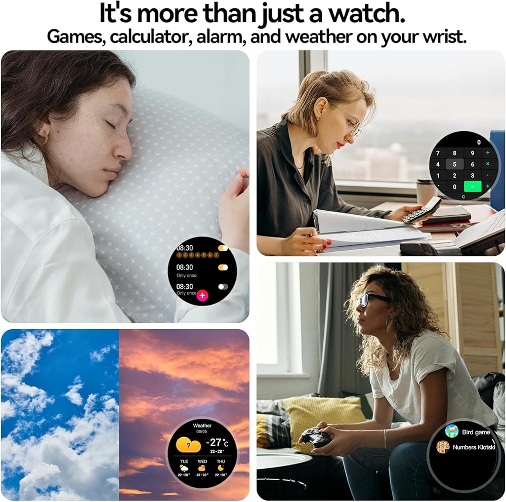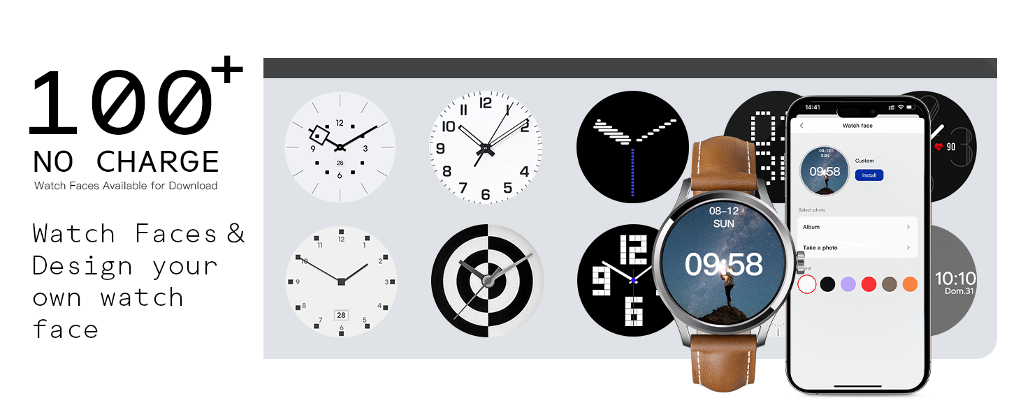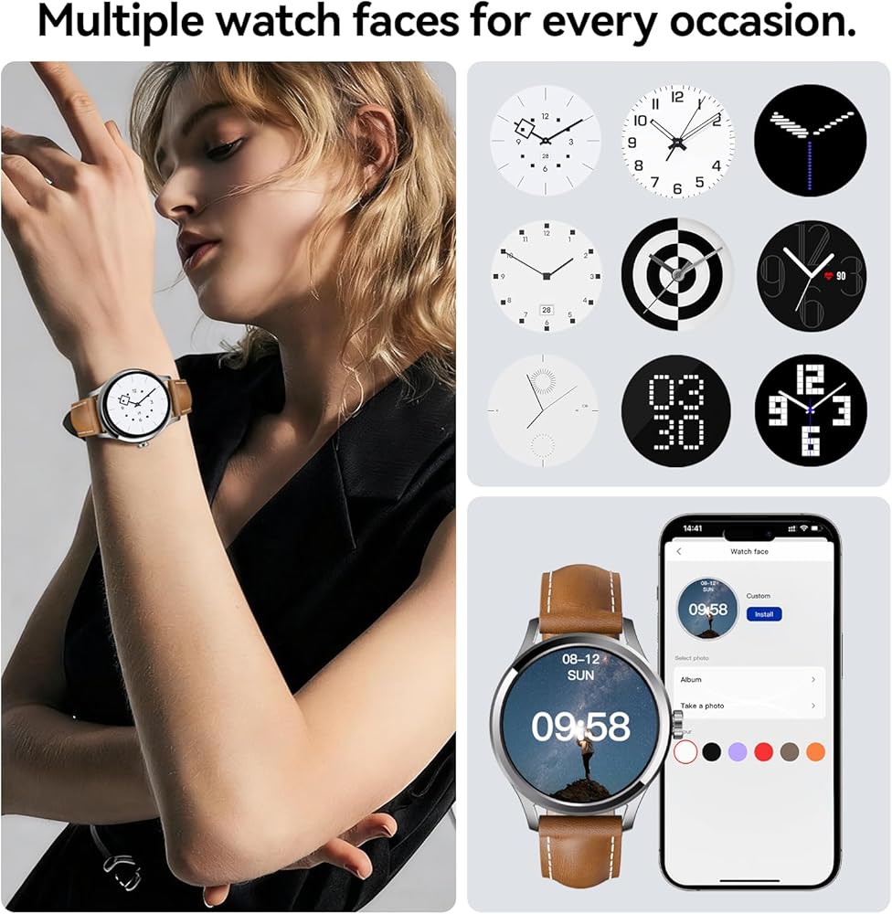 شاشة عالية الدقة مقاس 1.27 بوصة وأقراص يمكنك صنعها بنفسك: تحتوي الساعة الذكية على شاشة عالية الدقة مقاس 1.27 بوصة، مما يمنحك متعة بصرية مختلفة. أكثر من 130 قرصًا للاختيار من بينها، تتميز هذه الساعة الذكية بوظيفة تخصيص وجه الساعة. يمكنك عمل القرص المفضل لديك.