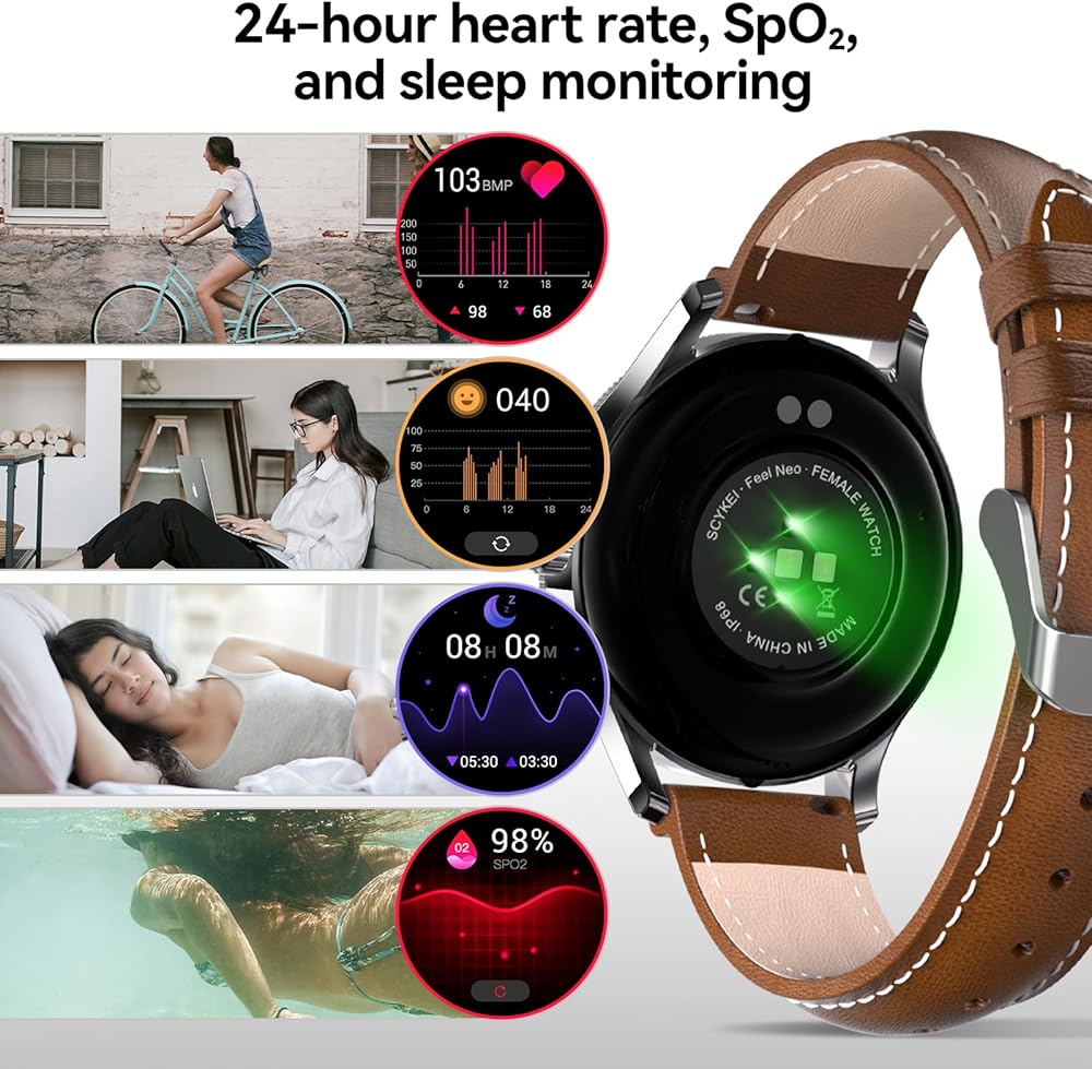 تنبيهات المكالمات والرسائل عبر البلوتوث: الساعات الذكية للنساء مدعومة بشريحة بلوتوث 5.3، والتي لا تسمح لك فقط بإجراء/استقبال المكالمات مباشرة على معصمك. وفي نفس الوقت يدعم أيضًا تلقي إشعارات الرسائل القصيرة والتطبيقات (غير قادر على الرد عبر الساعة)