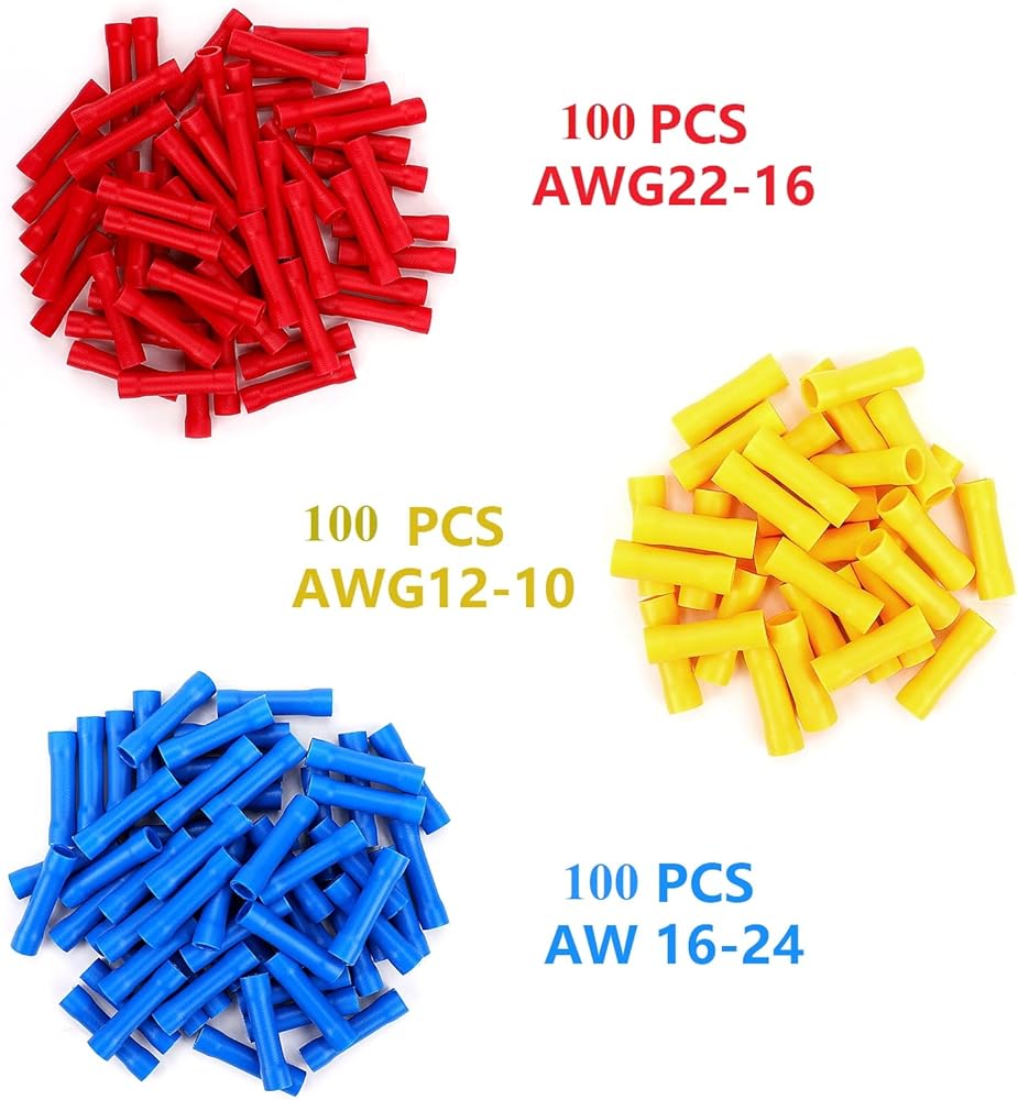 ✔ العبوة: 300 قطعة من أطراف التجعيد المعزولة، اللون: 100 قطعة أصفر/100 قطعة أزرق/100 قطعة أحمر. حجم الموصلات: (4.0-6.0) مم²/12-10 AWG، (1.5-2.5) مم²/16-14 AWG، (0.5-1.5) مم²/22-16 AWG.
