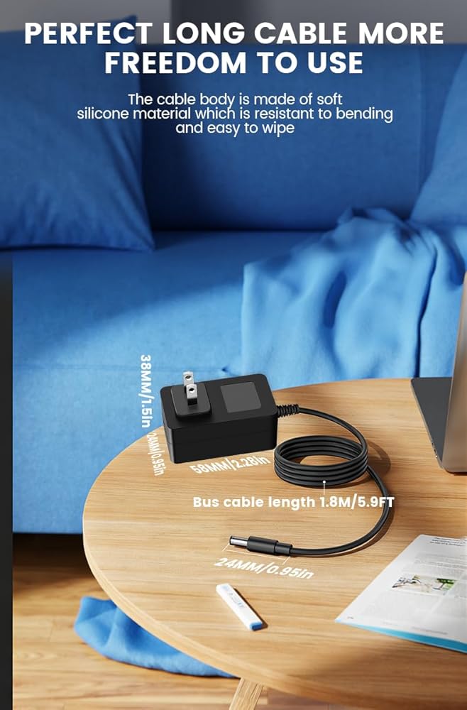 [Power Specification] Input: 100-240 V, 50/60 HZ; Output: DC 18 V 1 A, cable length:1.8M/5.9 FT.features smart indicator lights,easy to determine charging status
