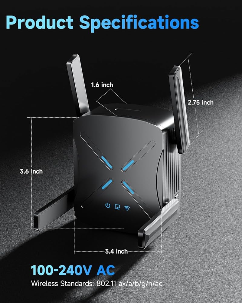 Say Goodbye To Dead Spots and Enjoy High-Speed Network Throughout The House: 2025 dual band wifi 6 extender signal booster uses the latest wireless technology to provide ultra fast transmission speed, stable connection, and ultra wide coverage, Long range up to 12,000 sq ft, Enjoy seamless streaming from the garage to the home office