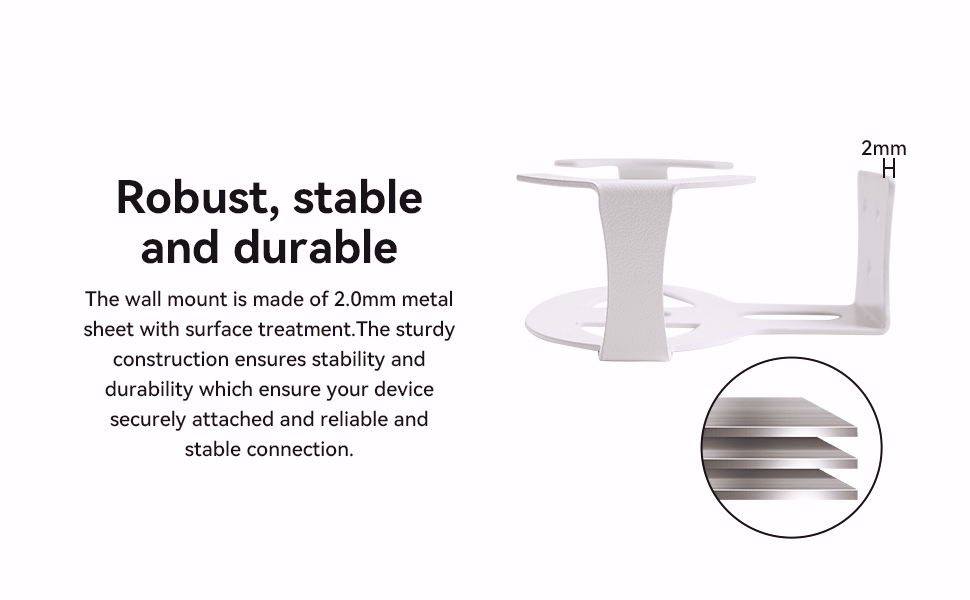 يتكون حامل الحائط من صفائح معدنية مقاس 2.0 مم مع معالجة سطحية. ويضمن البناء القوي الثبات والمتانة مما يضمن توصيل جهازك بشكل آمن واتصال موثوق به ومستقر.