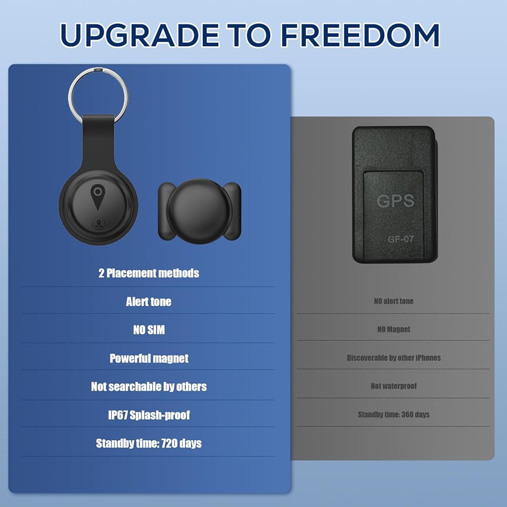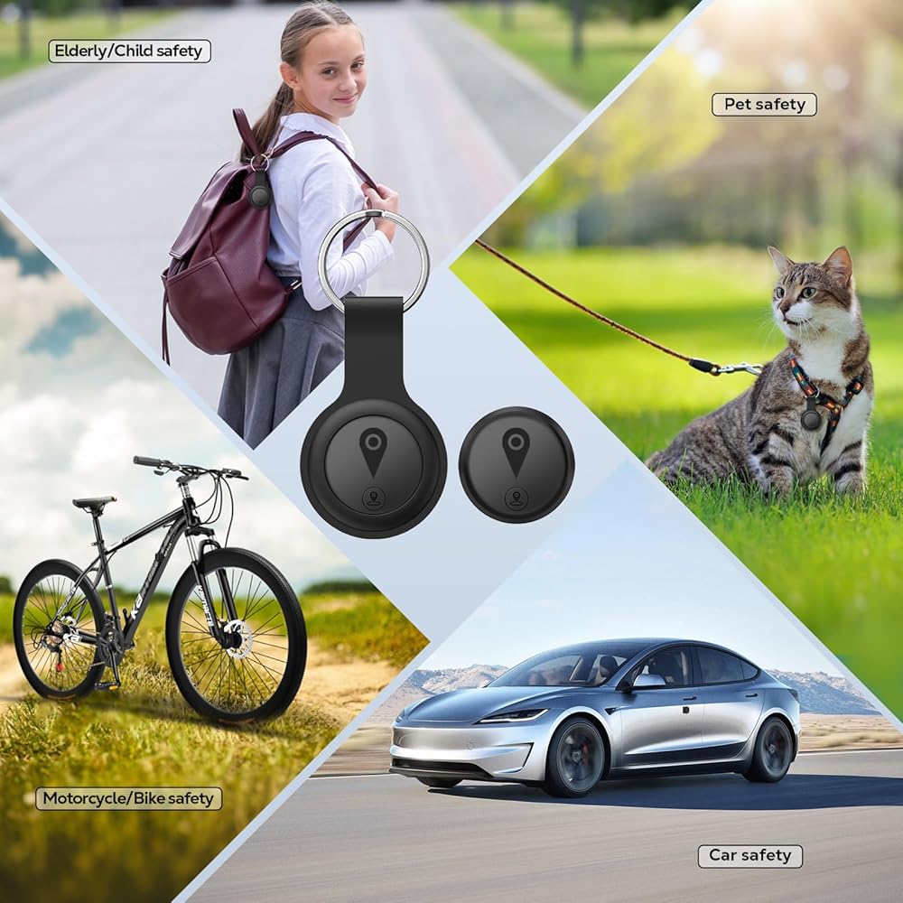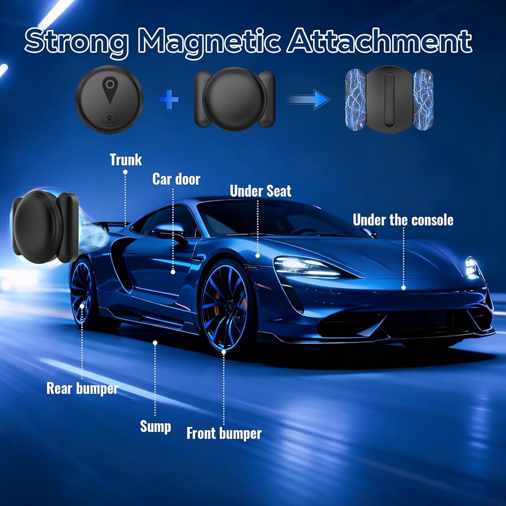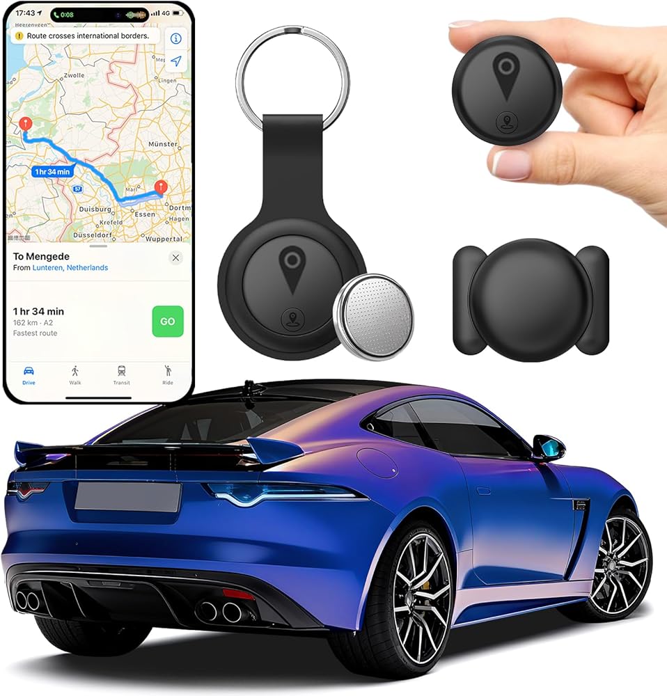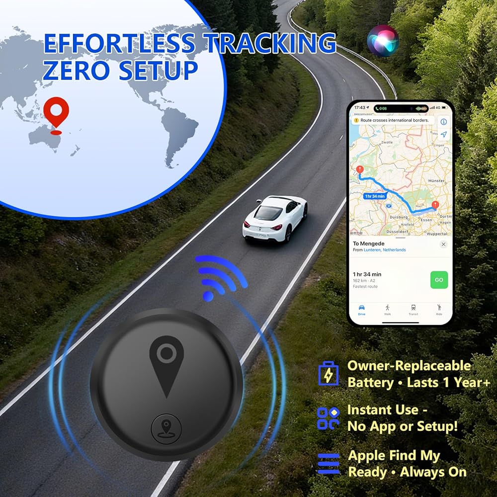 جهاز تعقب GPS صغير للمركبات، أجهزة تتبع للسيارات، جهاز تعقب GPS محمول مخفي للسيارات، مضاد لرش السوائل متاح لنظام iOS Find My (iOS فقط)، لا يتطلب اشتراك رسوم شهرية ولا يتطلب بطاقة SIM - أسود