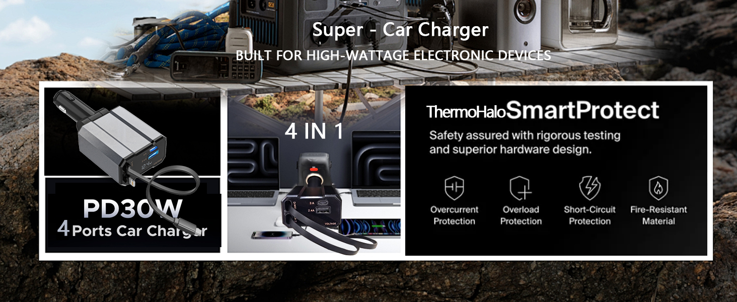 2 كابل قابل للسحب + منافذ USB-C وUSB-A | اشحن 4 أجهزة في وقت واحد: مزود بكابلين قابلين للسحب (Lightning وType-C)، بالإضافة إلى منفذ USB-C ومنفذ USB-A، يعمل هذا الشاحن على تشغيل ما يصل إلى أربعة أجهزة في وقت واحد. مثالي للعائلات وسائقي سيارات الأجرة ومستخدمي التكنولوجيا متعددي المهام.
